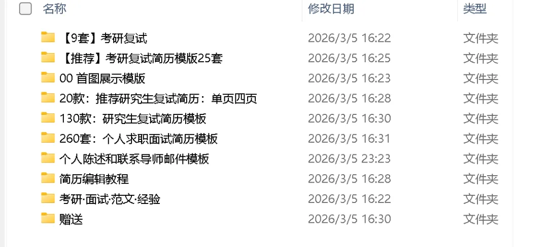 1、下载相应的网盘app(百度网盘、夸克网盘、迅雷网盘)2、复制链接,打开相应的网盘,一般会自动跳转资源,如果没有,手动把链接黏贴到网盘的搜索框,直接搜索,就能搜到。(推荐手机使用,电脑有几率出现错误)研究生复试简历模板100套,联系导师邮件模板,免费领取,附链接