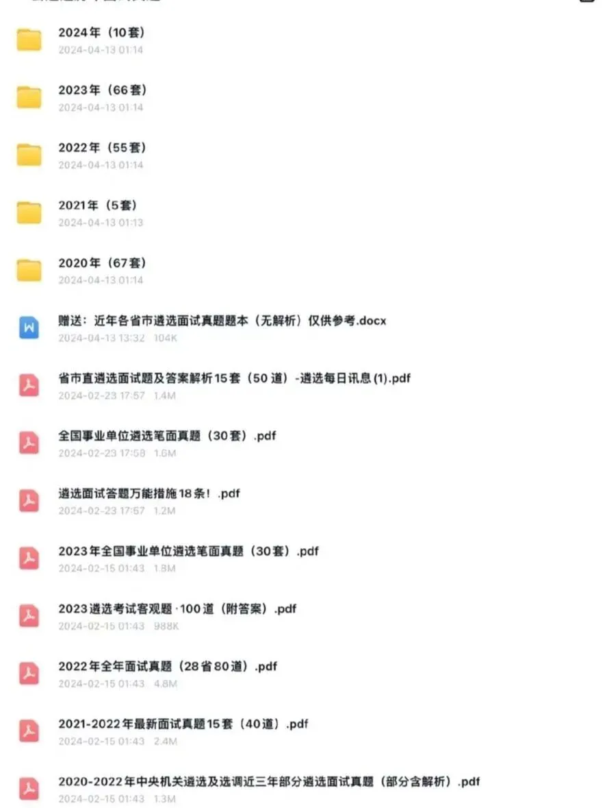 公务员遴选面试必备!耗时3天整理20-24年248套中央及各省市真题+解析,上千道题目免费分享!