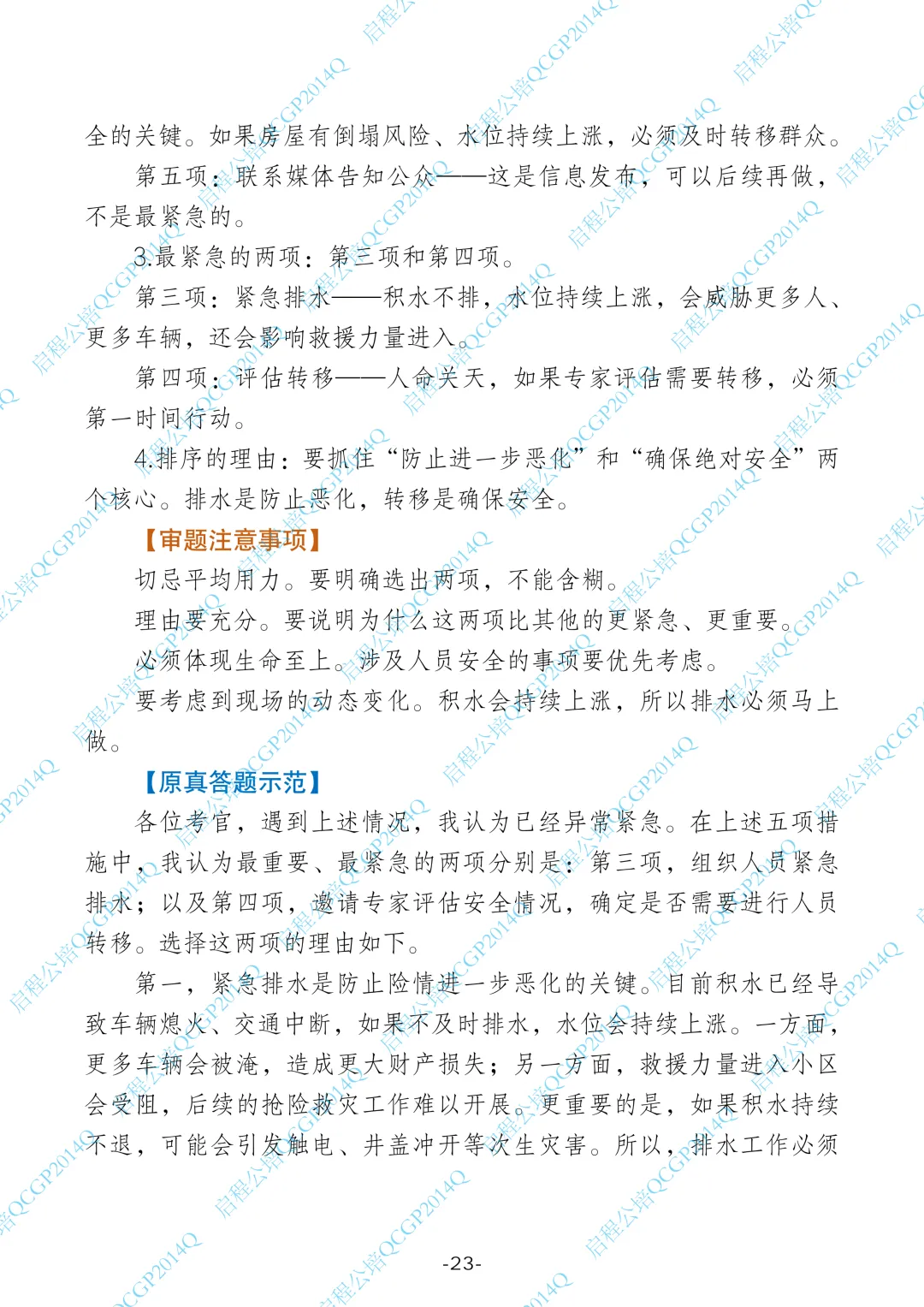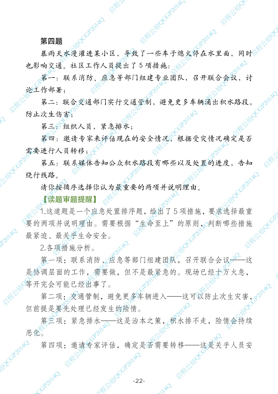 1.这道题是一个应急处置排序题,给出了5项措施,要求选择最重要的两项并说明理由。需要根据“生命至上”的原则,判断哪些措施最紧迫、最关乎生命安全。