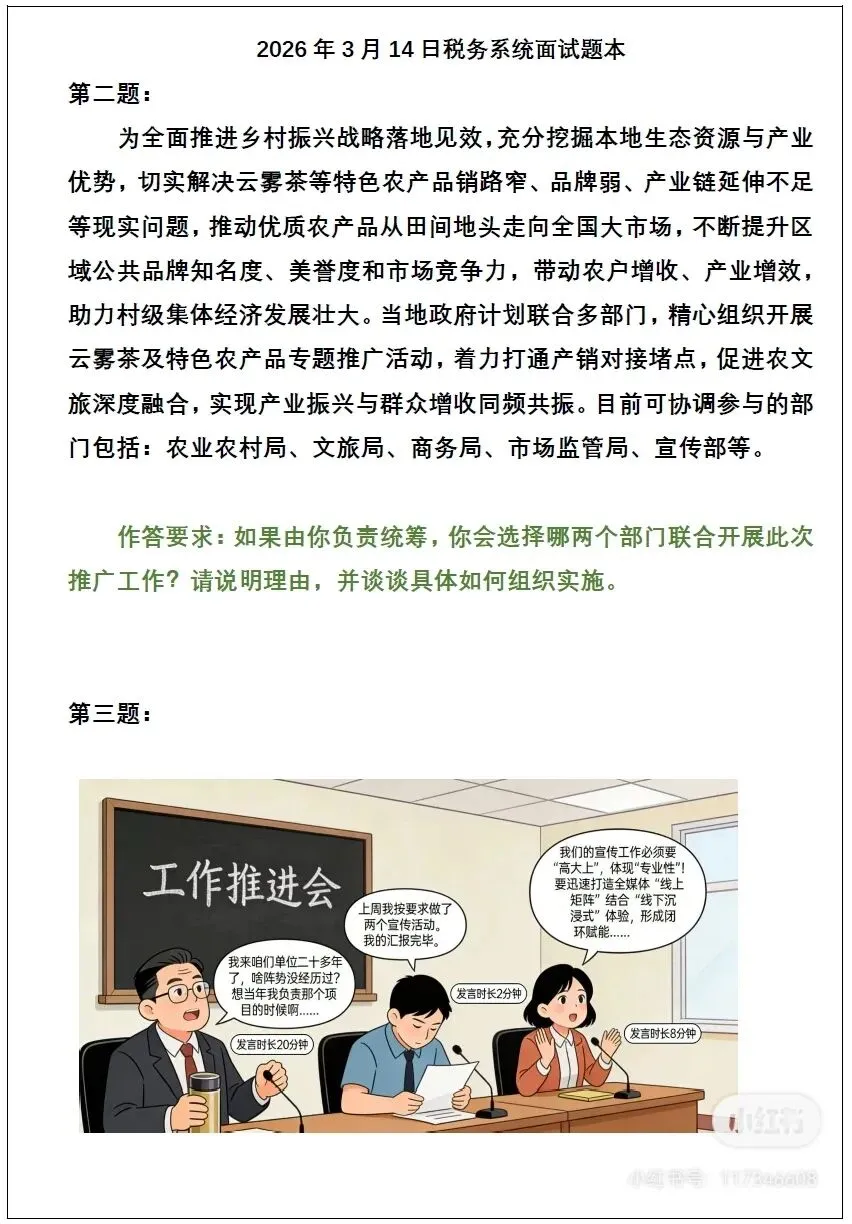 2026年3月14日国税面试真题(转载)