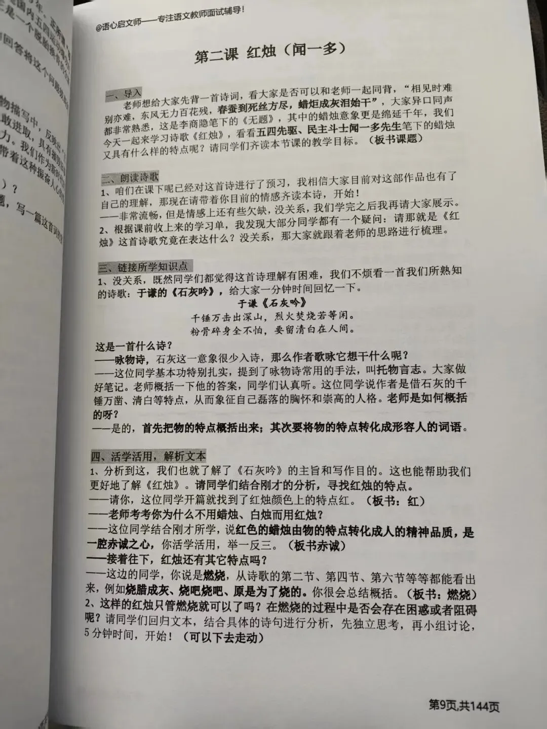 《高中语文面试试讲逐字稿》