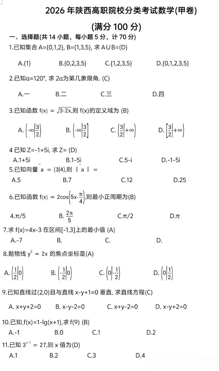 26年陕西单招(分类招生)考试
