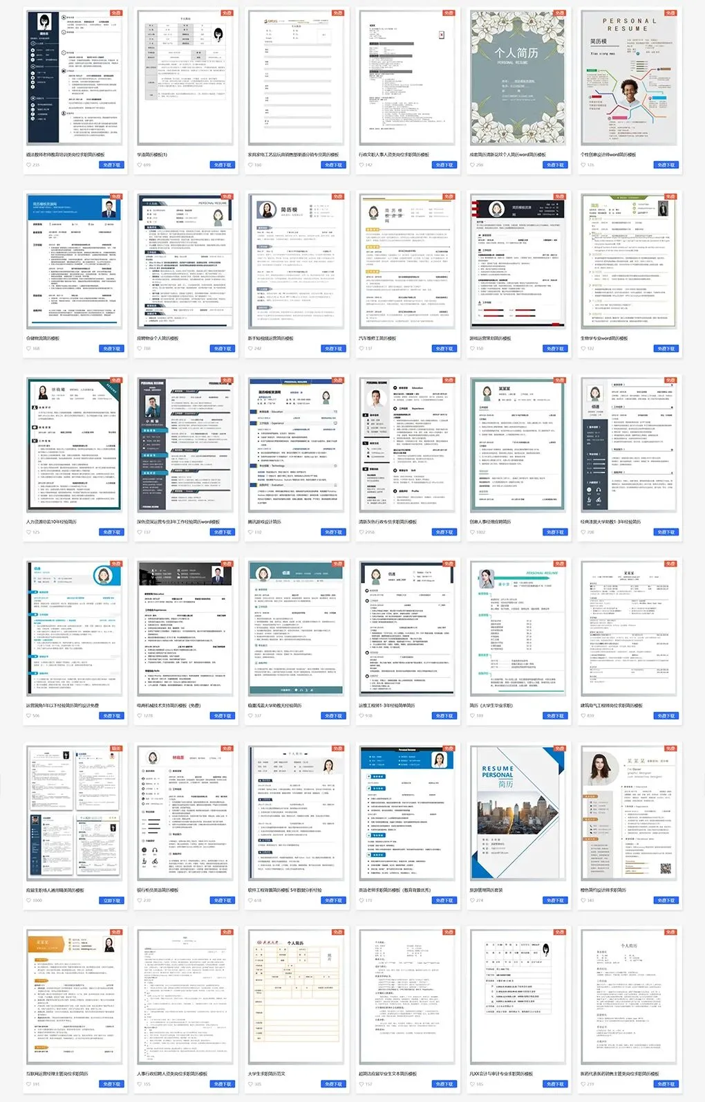 💸 完全免费开放 - 整合全网收费与免费精品资源,真正实现简历下载自由