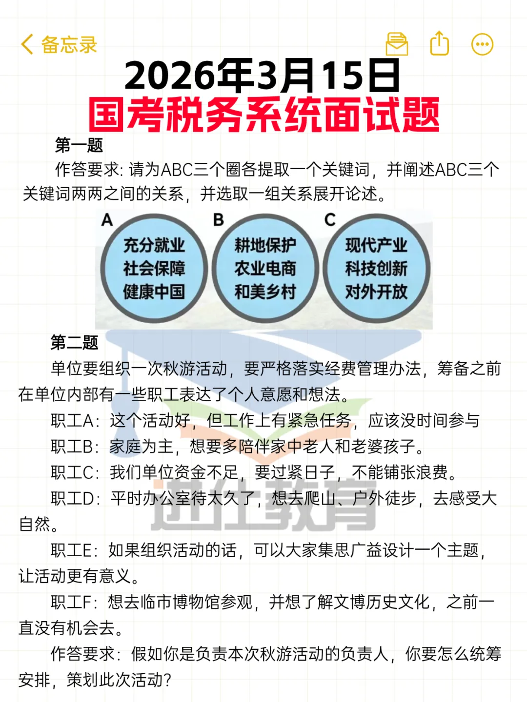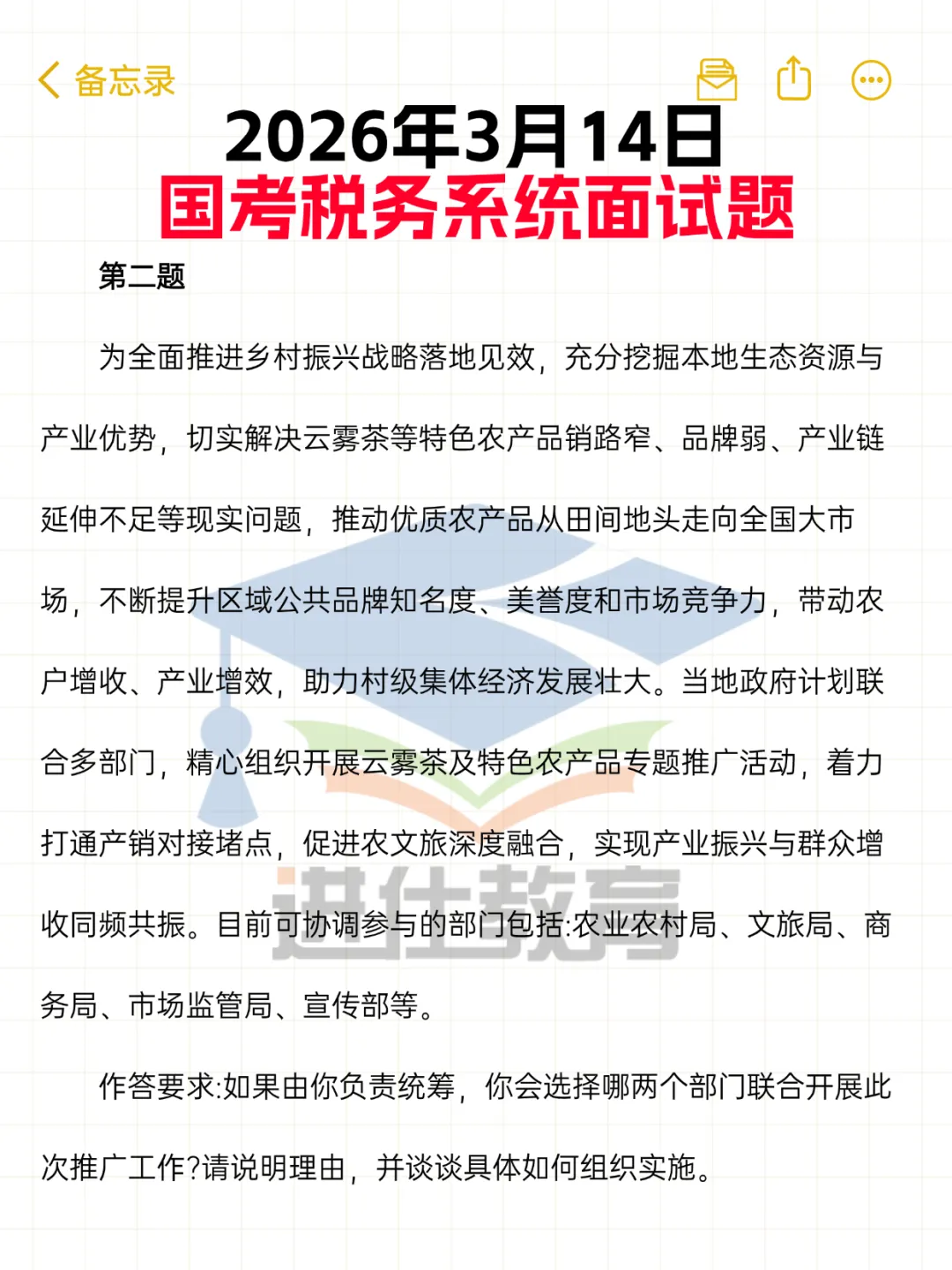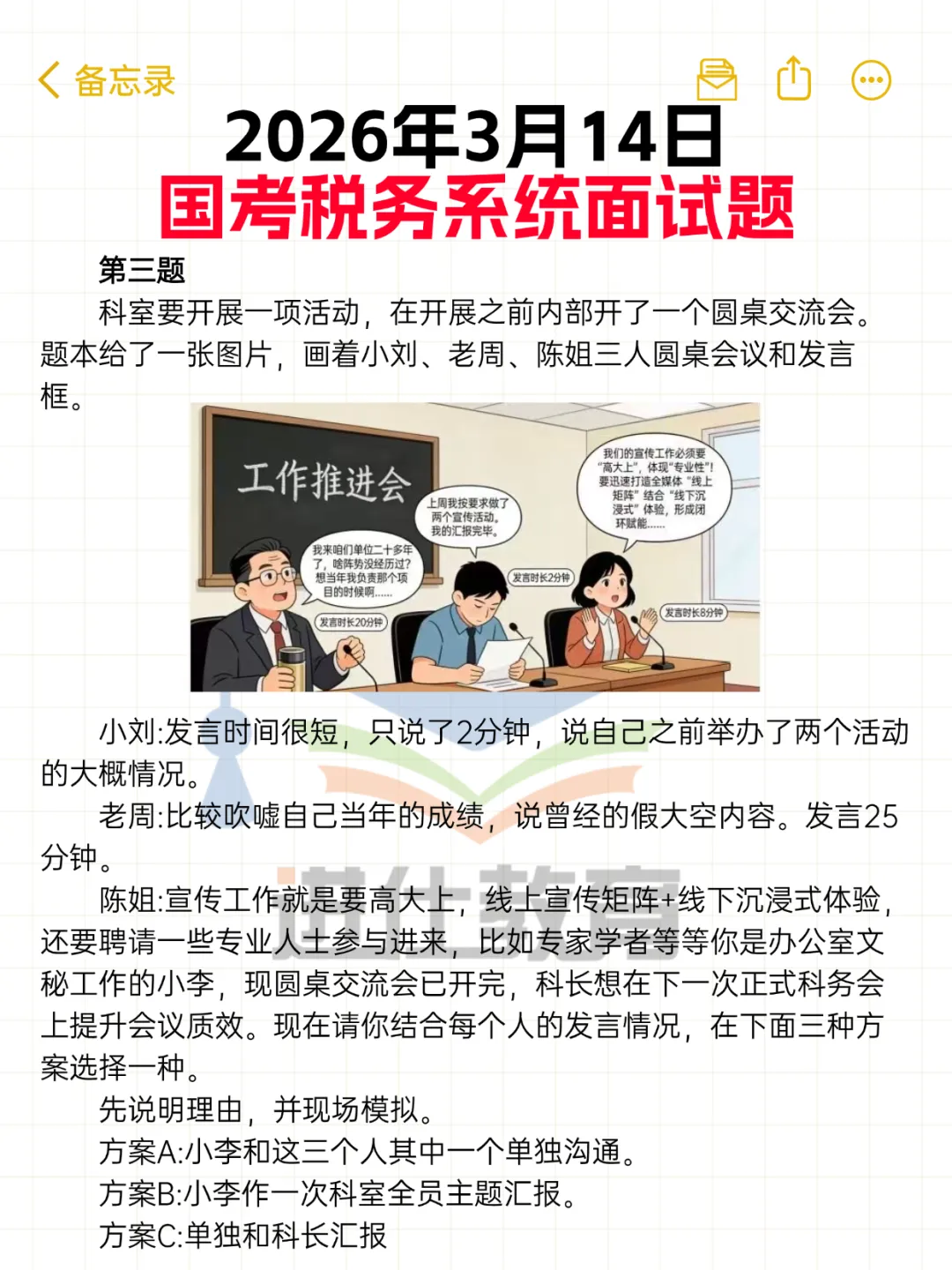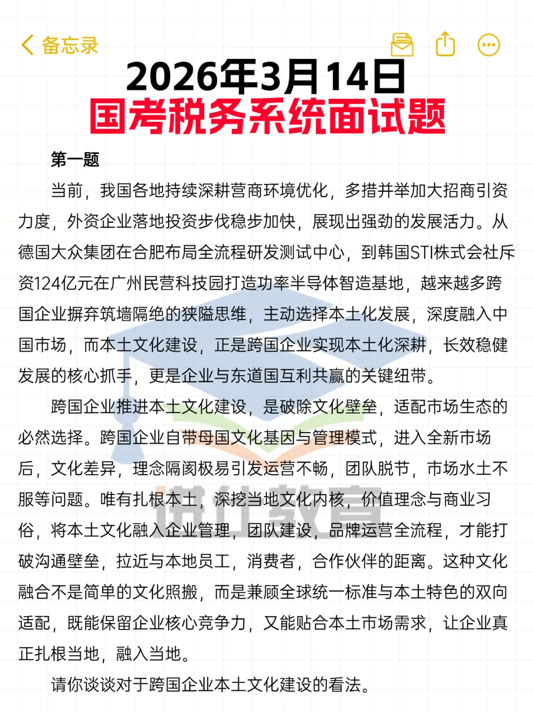 2026年3月14日上午国考税务面试真题(考生回忆版) 及解析