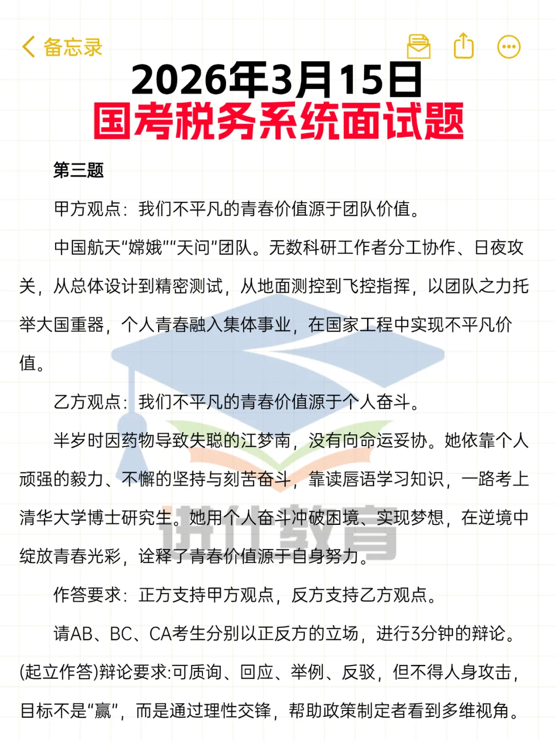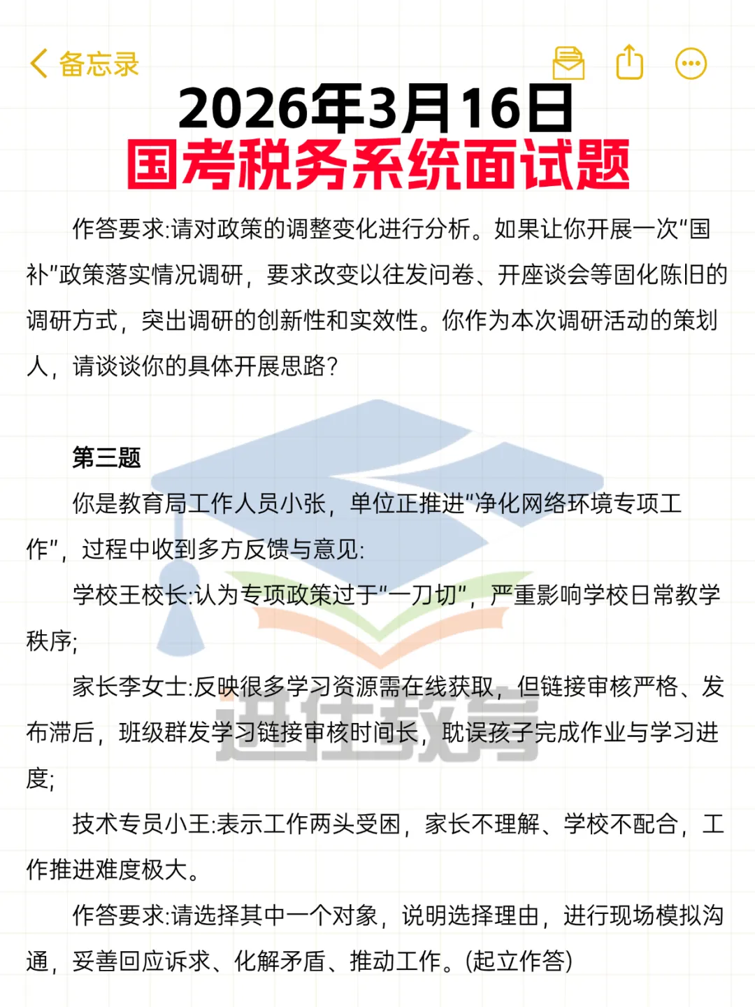 2026年国家税务总局面试真题回忆版(3月16日)