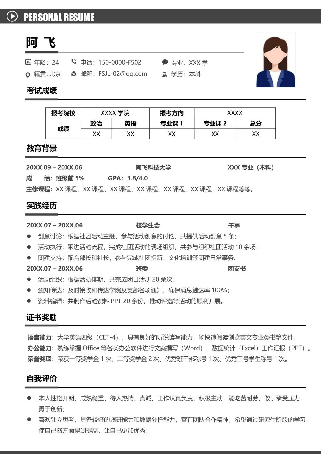 4、简历格式:电子版可编辑Word格式简历模板,手机电脑平板均可对内容自由编辑修改,格式可转换为PDF格式