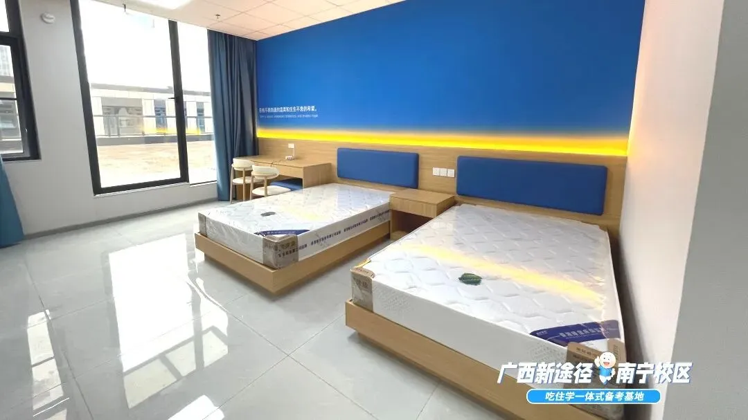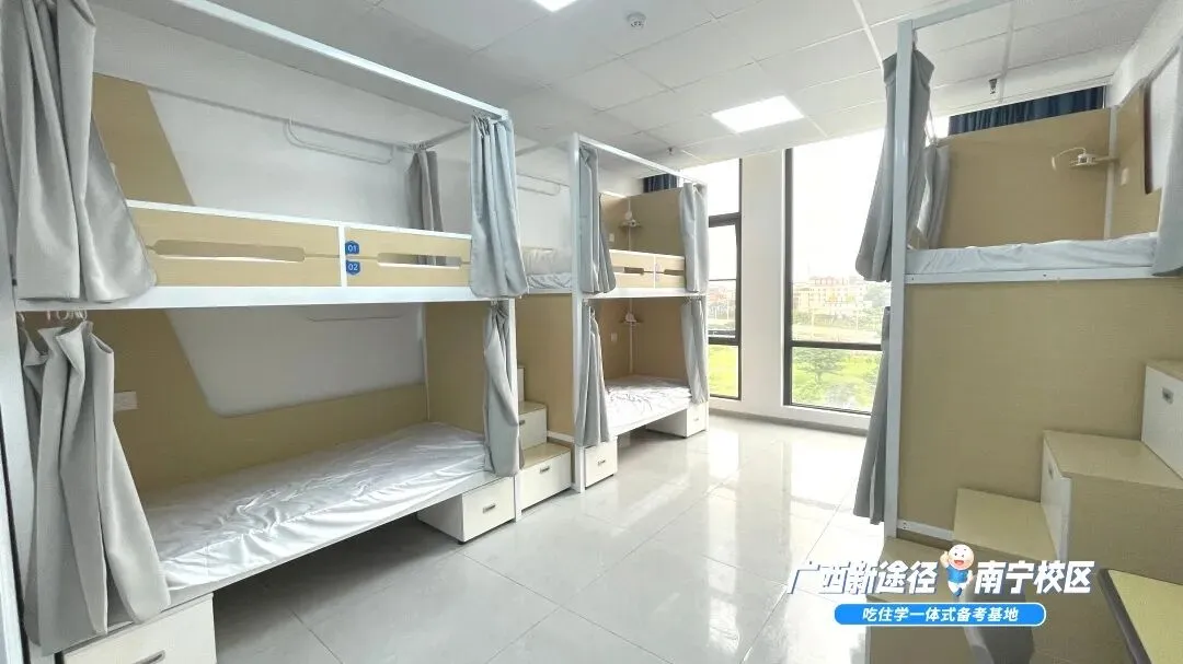 学习和生活一体化。三楼为教室,四楼为双人间宿舍,五楼和六楼为四人间和六人间宿舍,能省下更多时间用于学习~