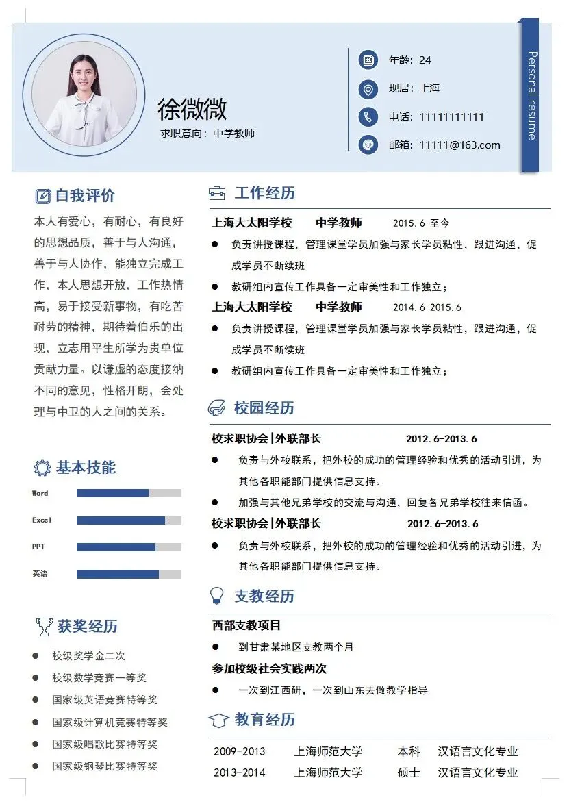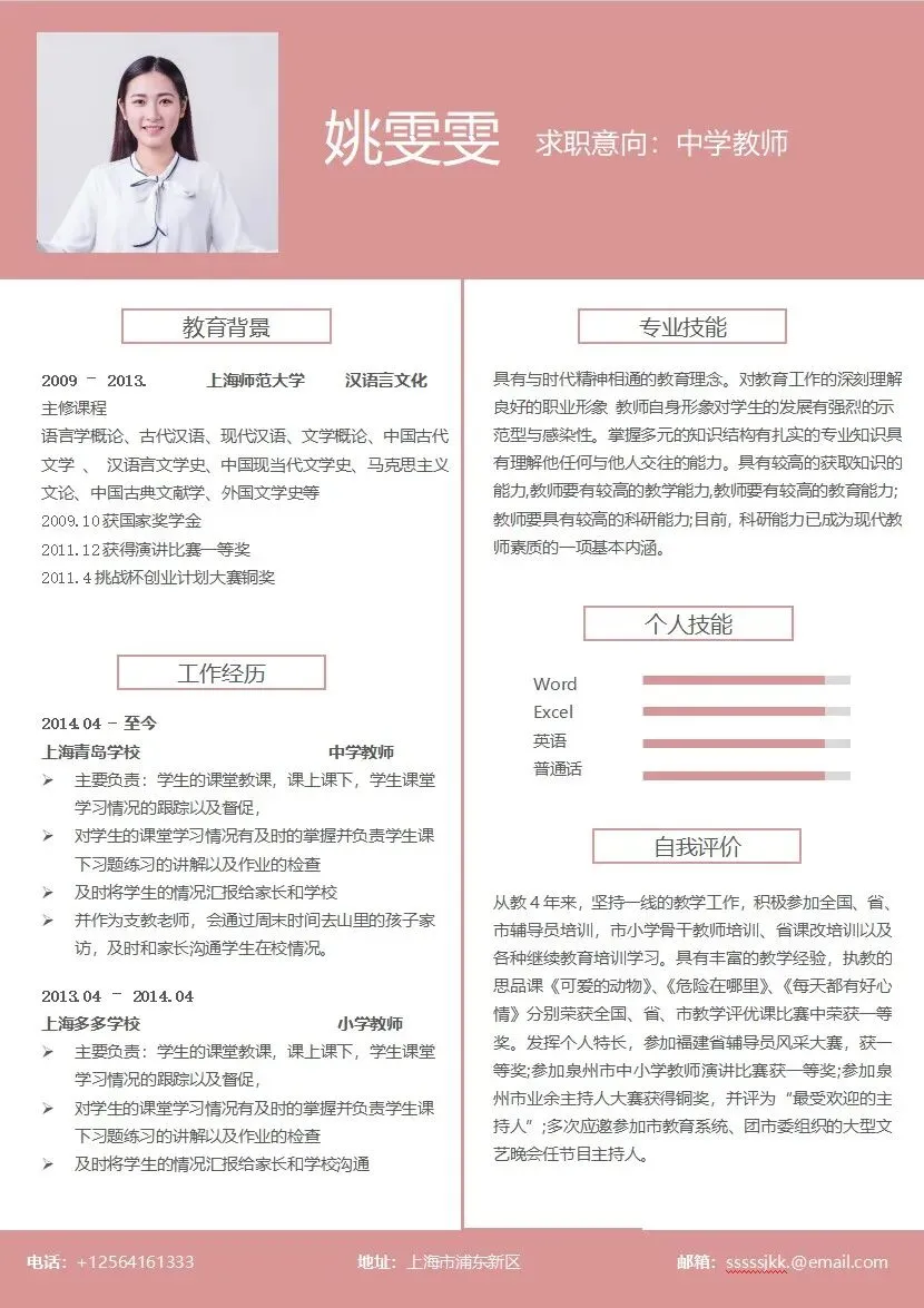 分享各种【教师个人简历模板】