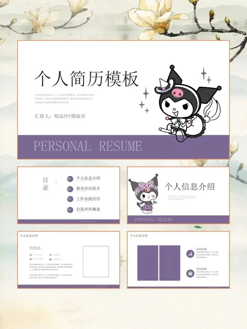 [PPT模板]紫色小恶魔个人简历三月限定女神节专题策划八月开学第一课课件预热