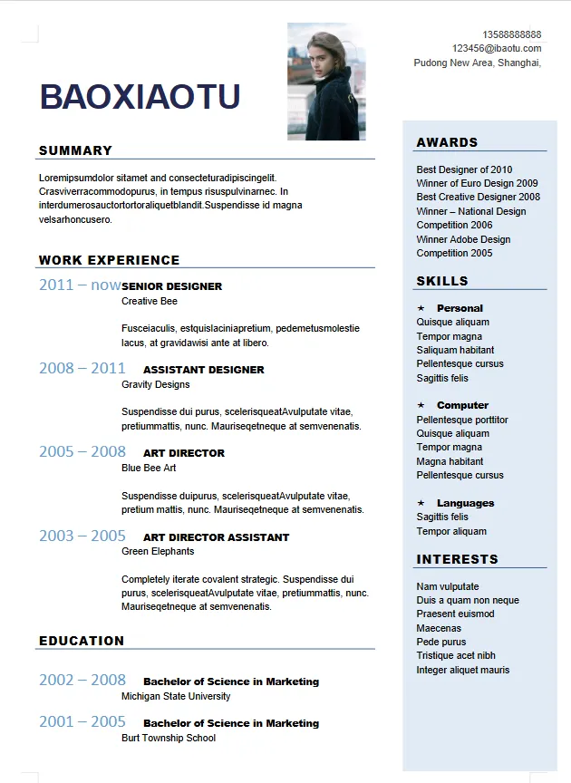 对标外企求职标准,版式符合国际职场审美,附带英文写作规范。不管是海外岗位还是国内大厂外企,都能精准踩中求职要点。