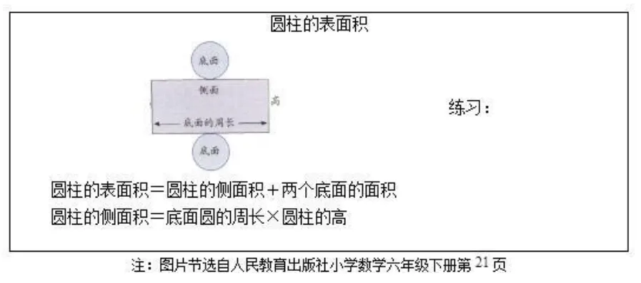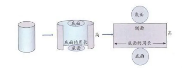 根据已有知识,学生容易得到圆柱的表面积=圆柱的侧面积+两个底面的面积。
