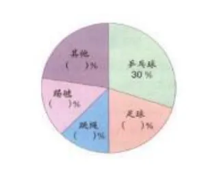 大屏幕展示体育课上六(1)班学生自由活动的情境图,让学生根据情境图找出图 中进行不同活动的人数,并计算各项运动人数占总人数的百分比,填入表格。