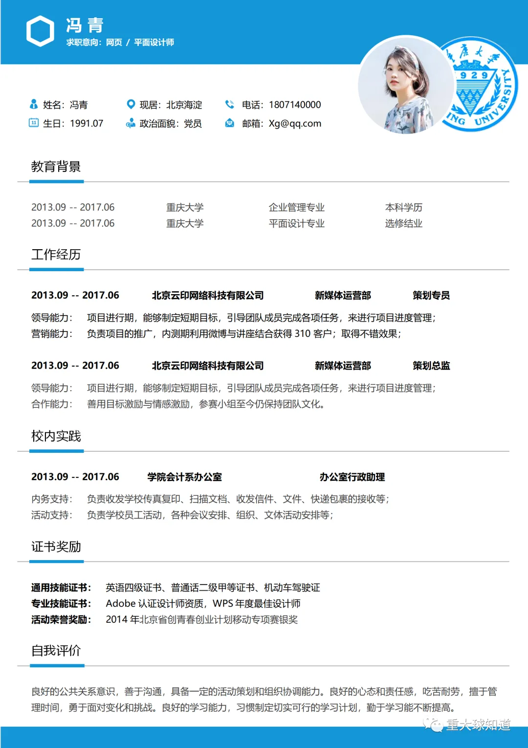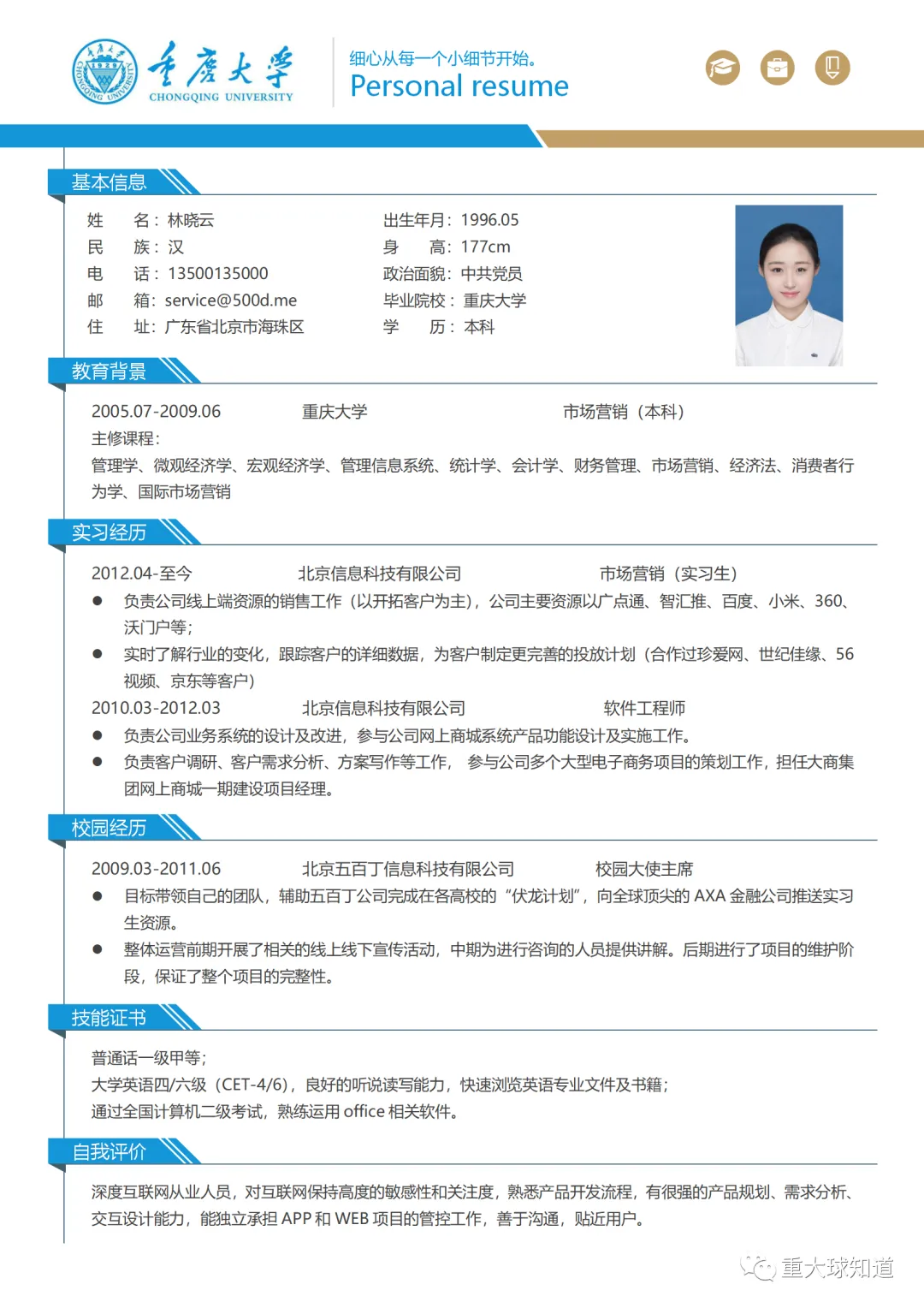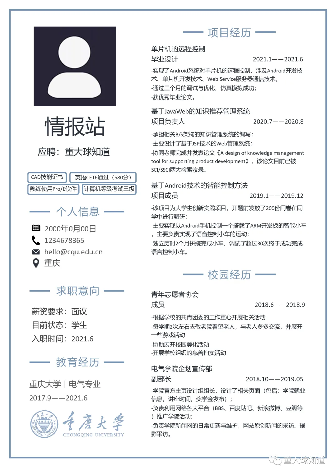 重庆大学专属简历模板