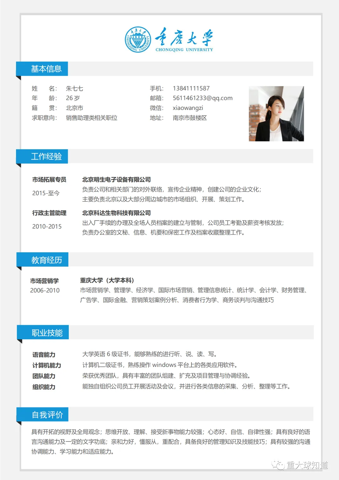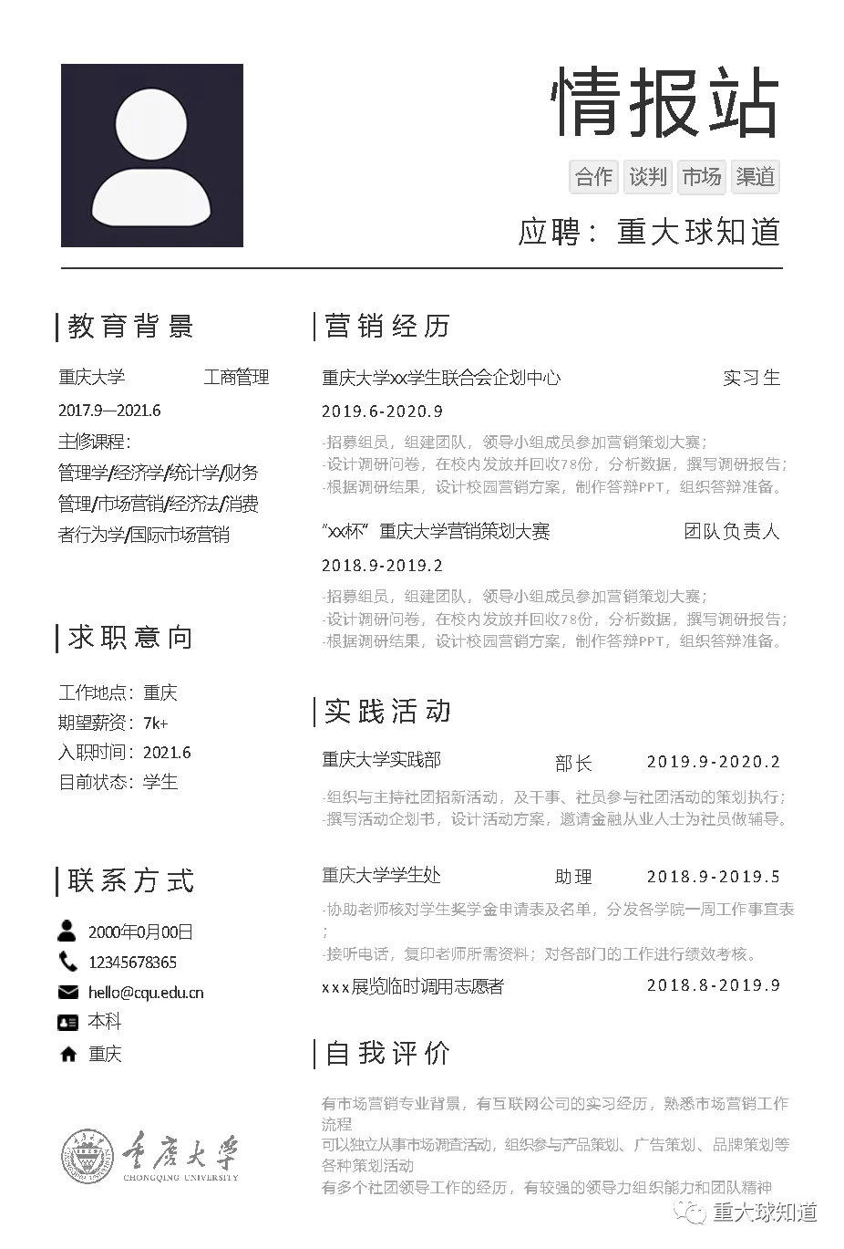 >重庆大学专属简历模板来啦~