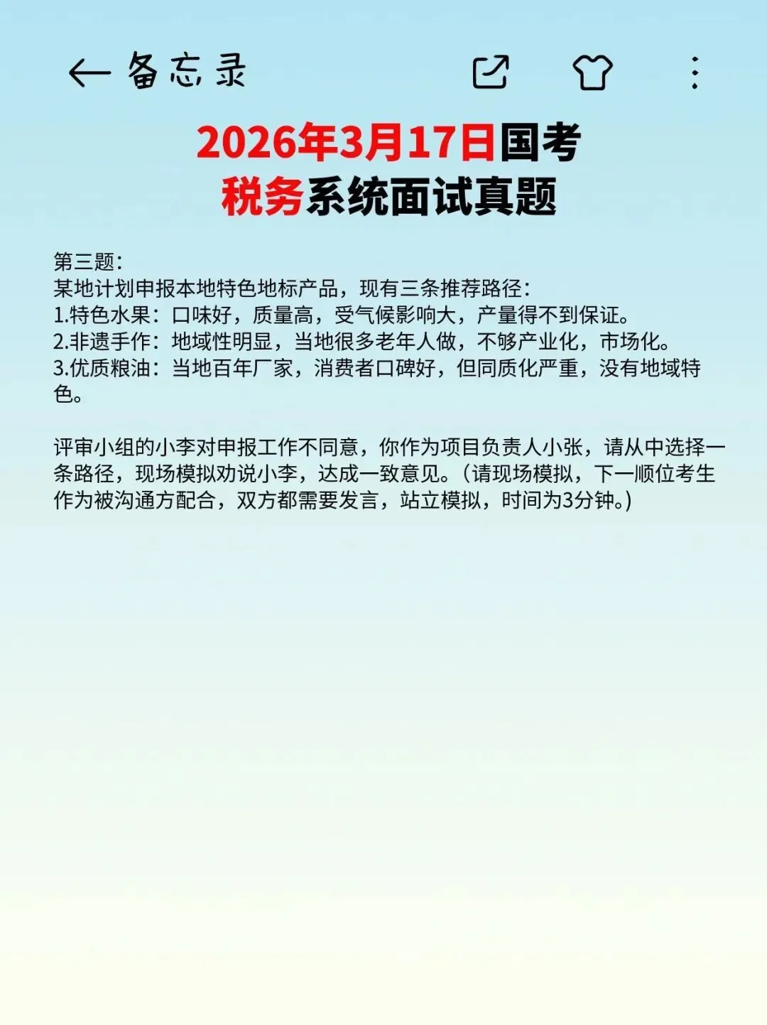 2026年3月15日国考税务面试真题及解析!