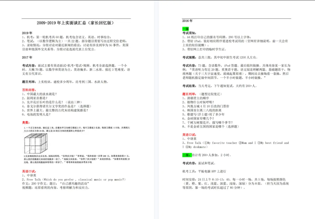 但你知道吗?上实的面试题,其实有规律可循! 从2009年到2025年,16年的真题里藏着学校考察的核心能力:逻辑思维、语言表达、知识储备、应变能力……今天就给大家分享一份超全的《上实2009-2025年面试真题合集》,帮孩子提前练手,面试不慌!