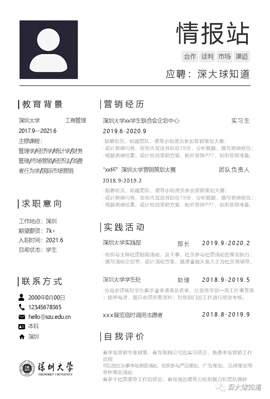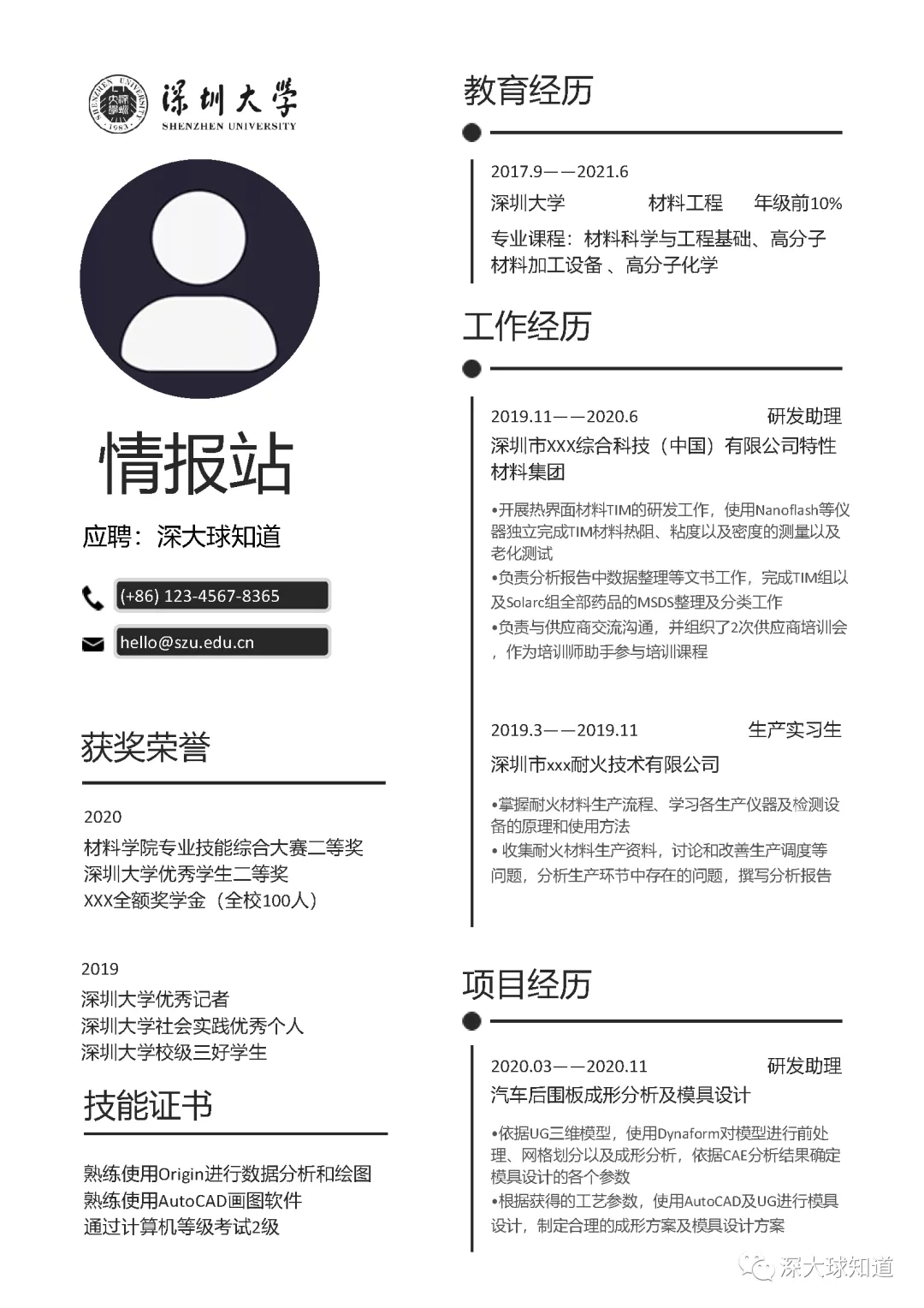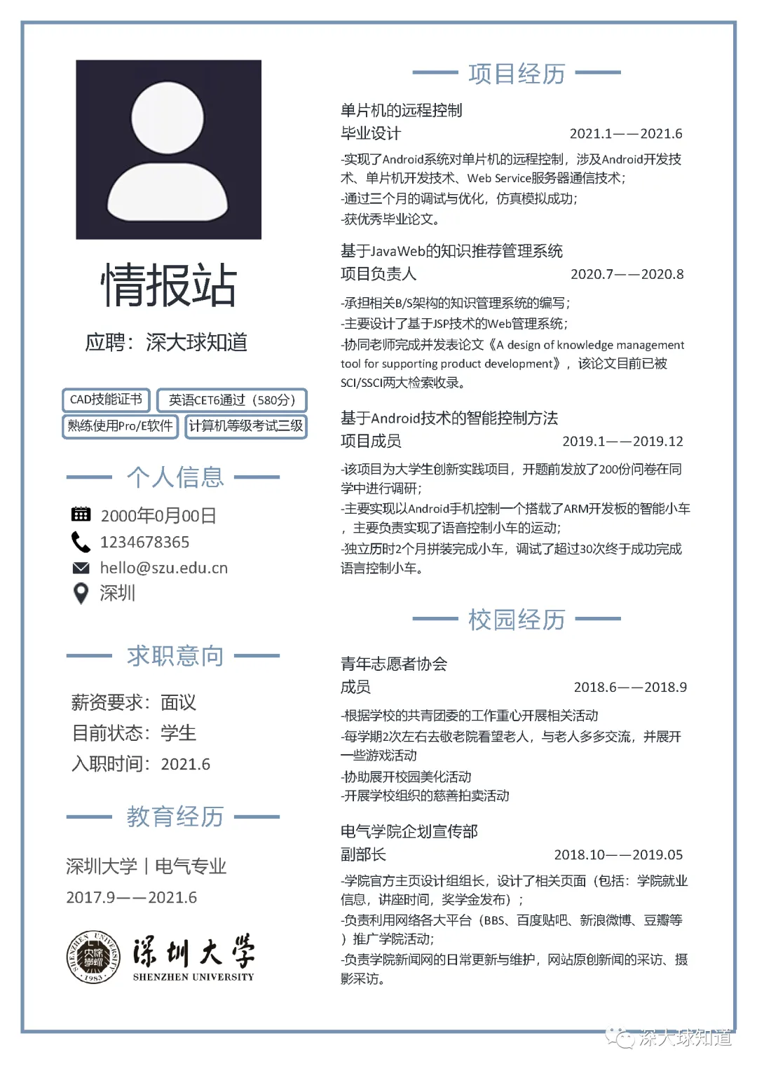 本次为深圳大学简历