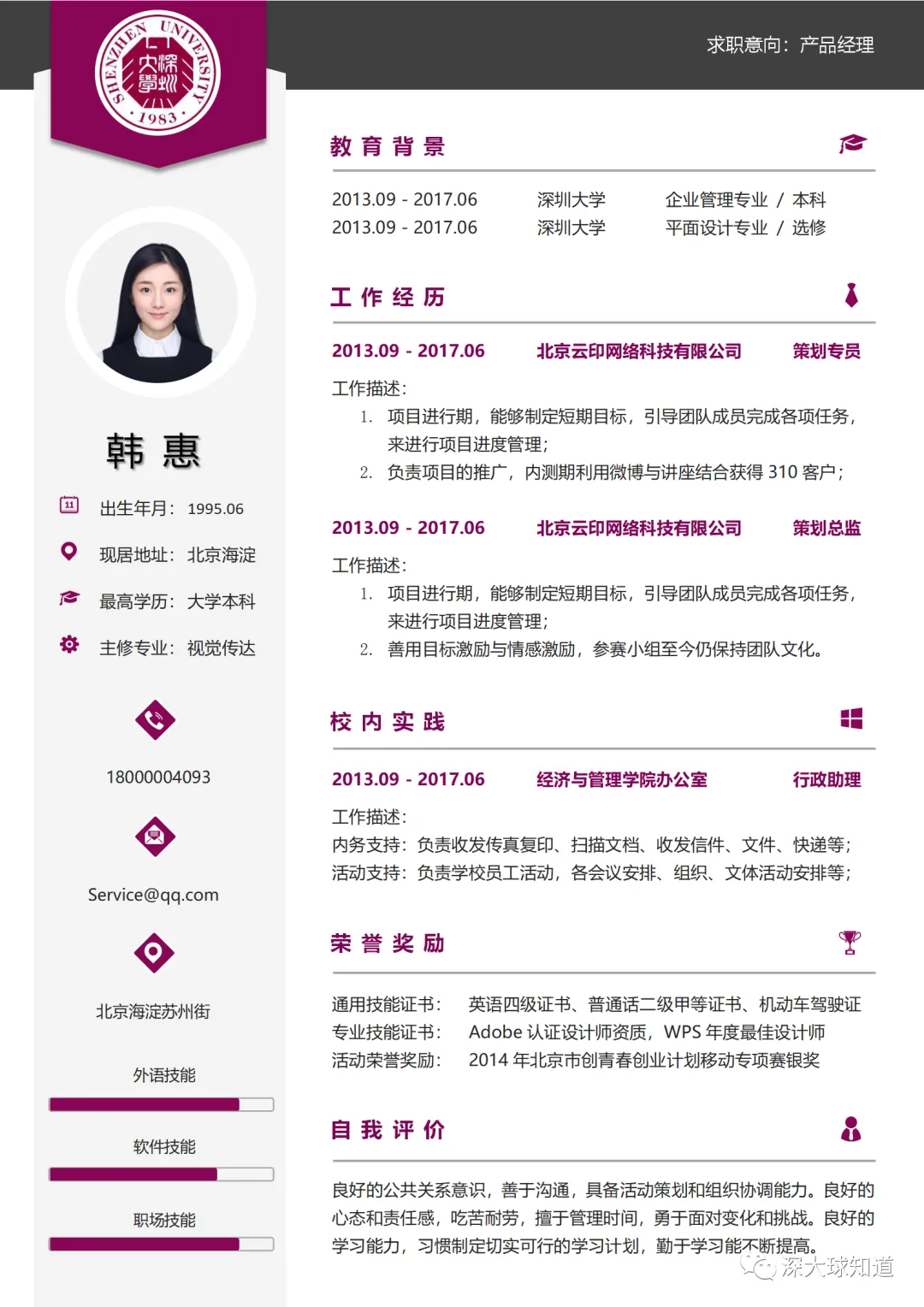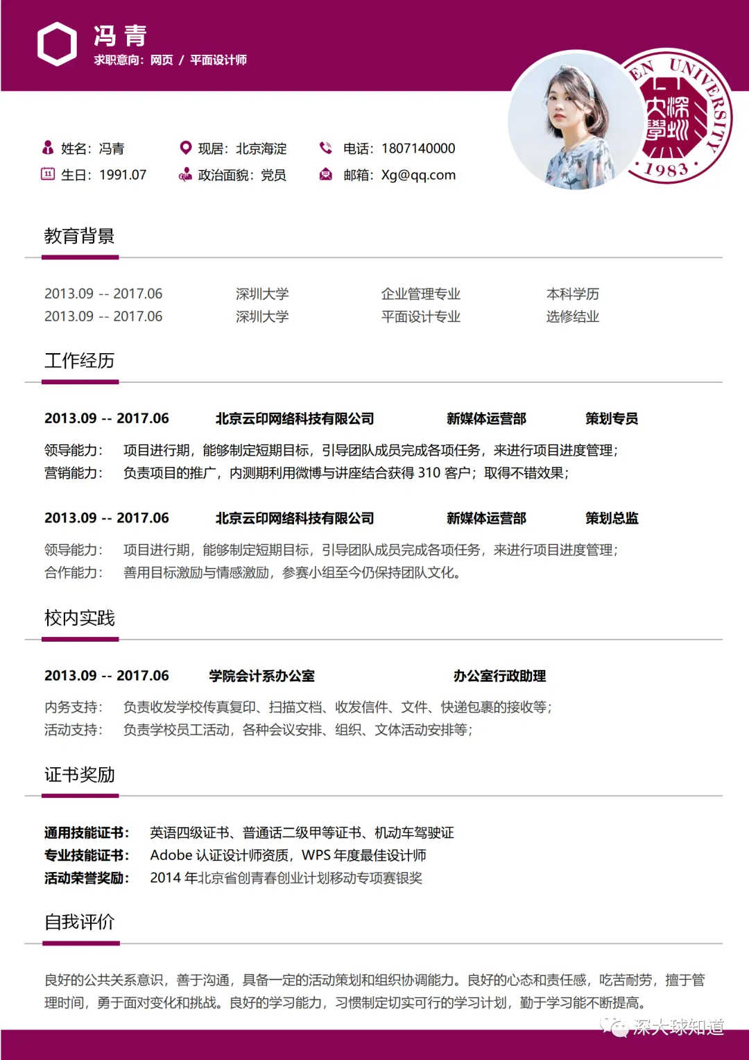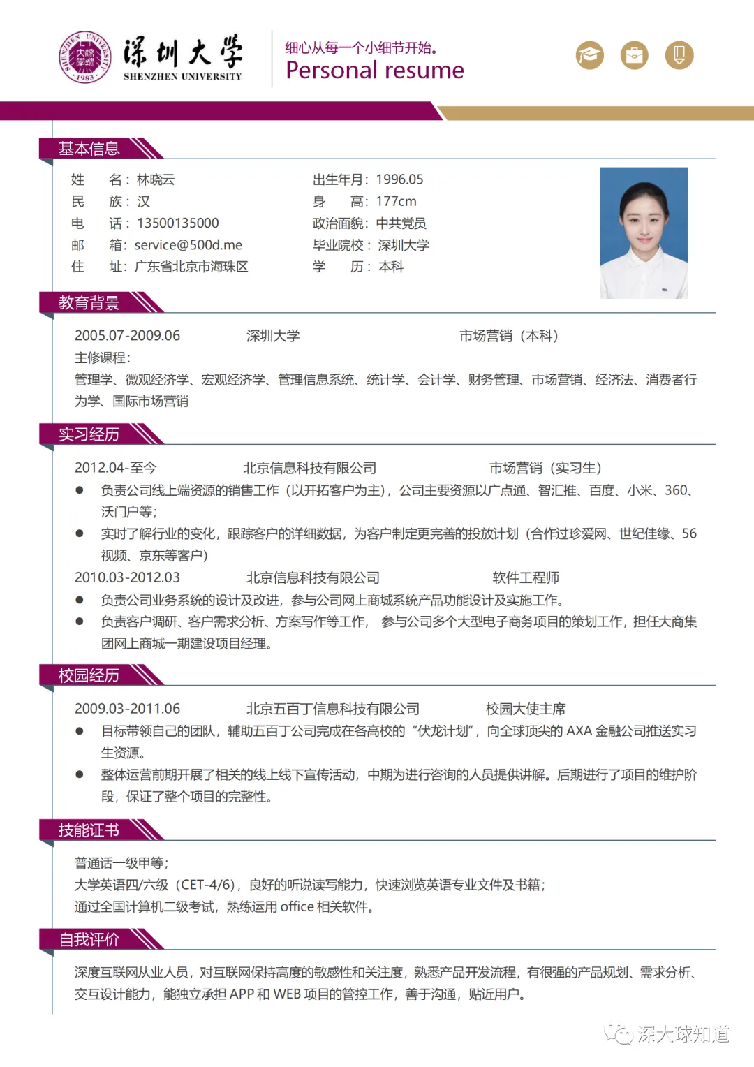 本次为深圳大学简历