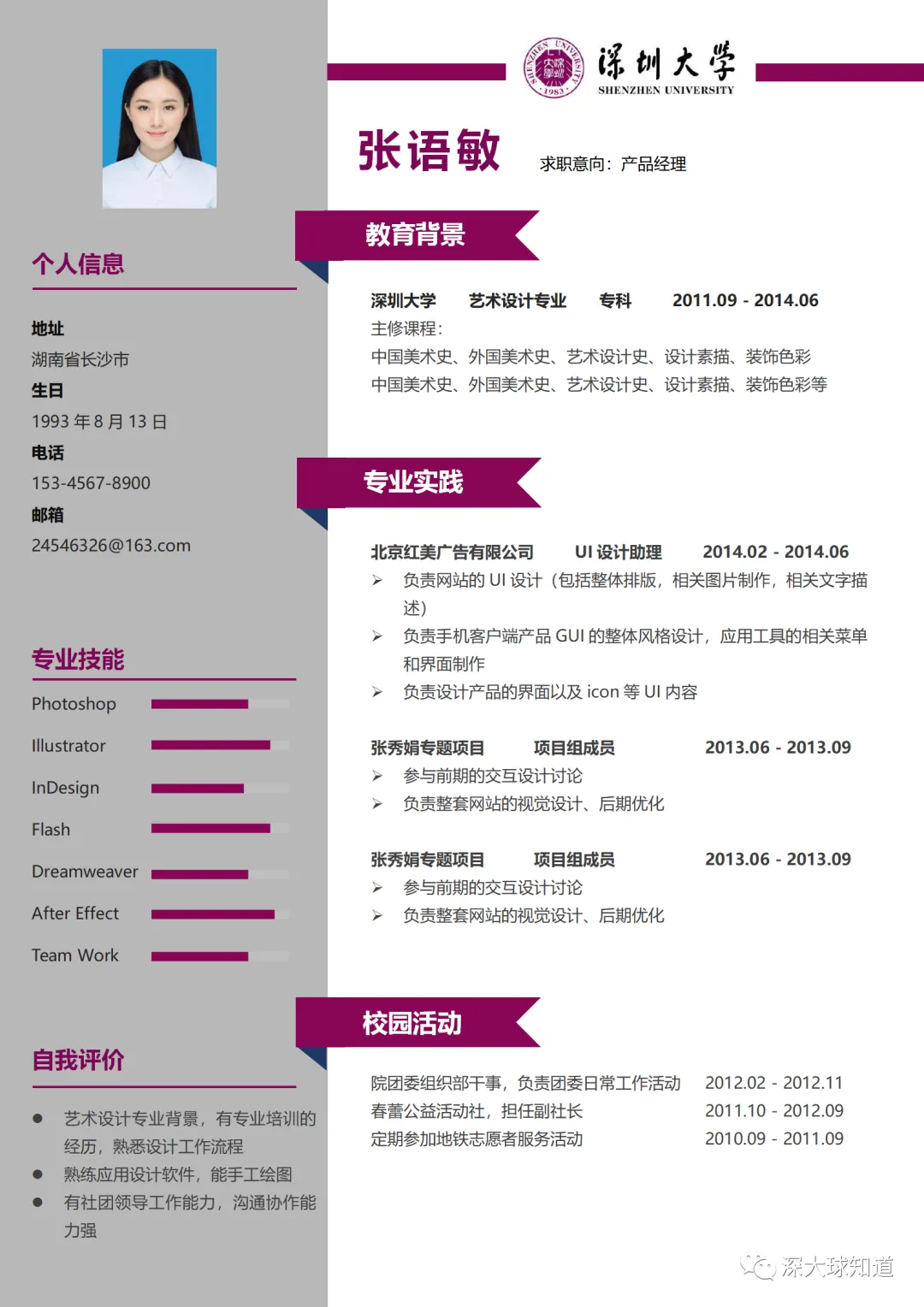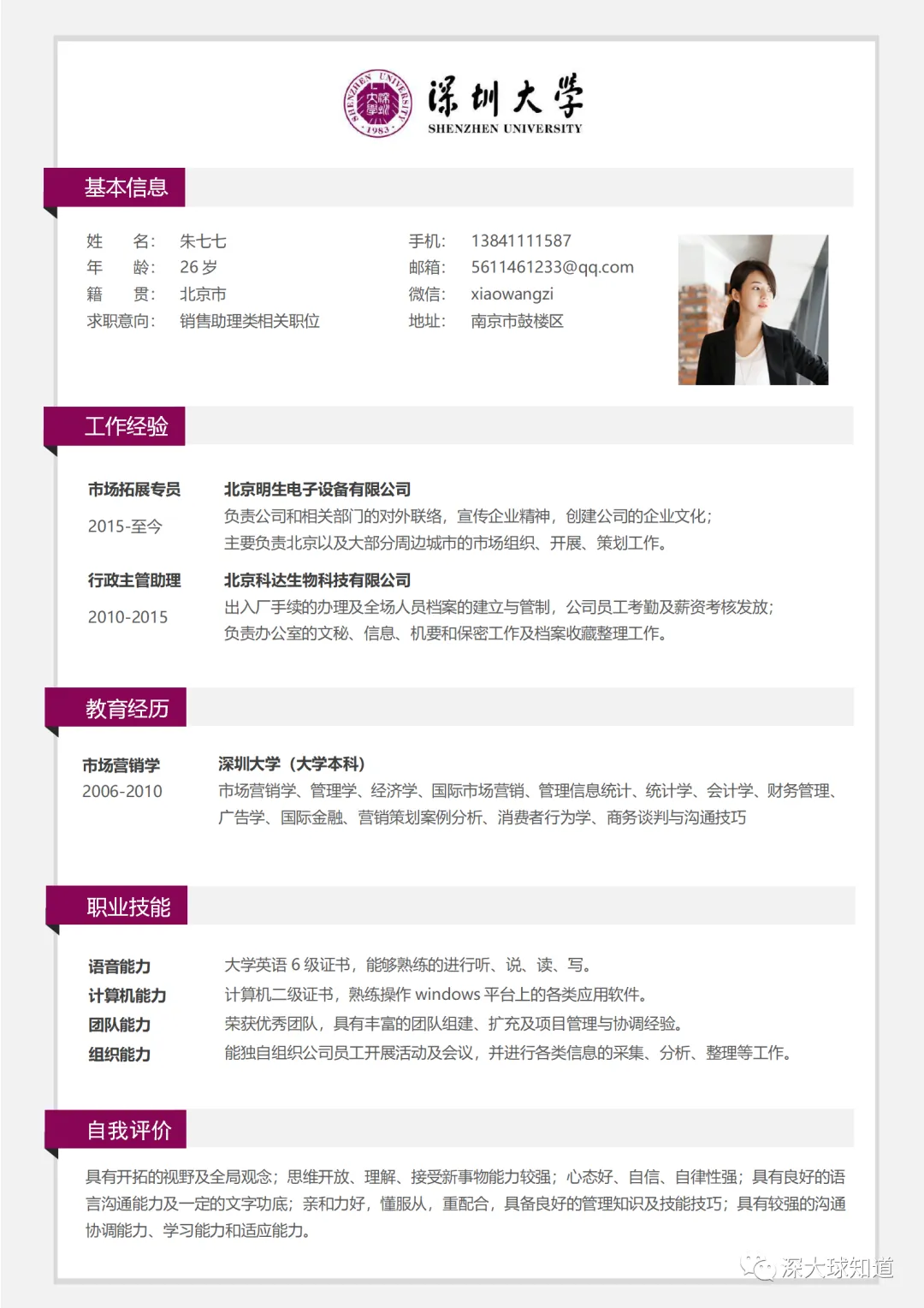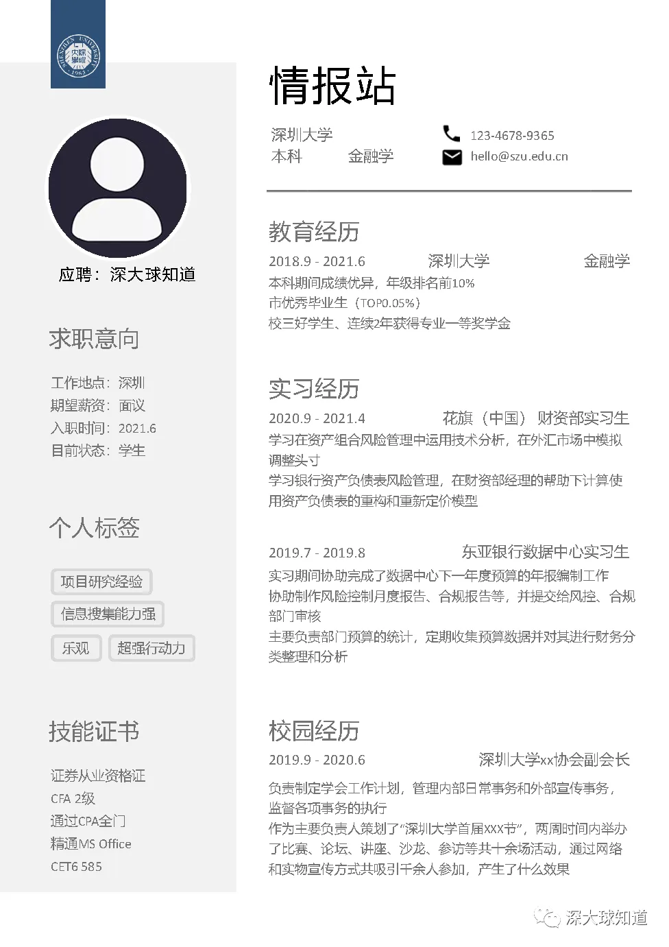 深圳大学简历模板