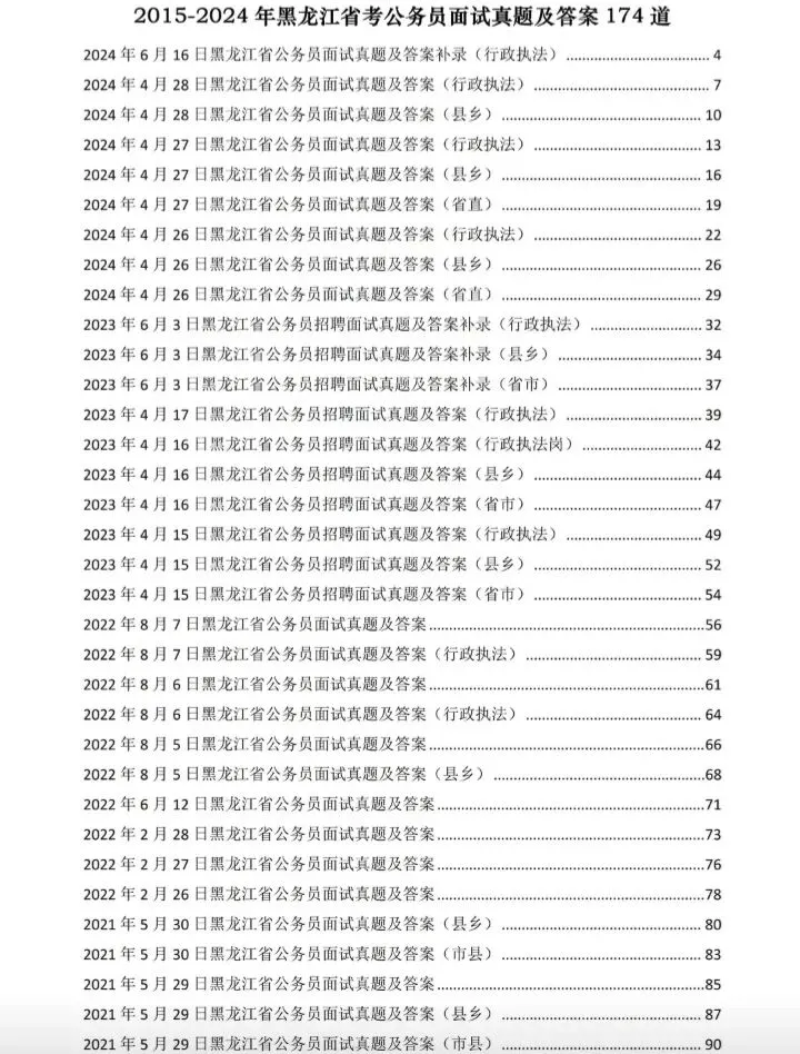 >15-24年黑龙江公务员面试真题含答案逐字稿