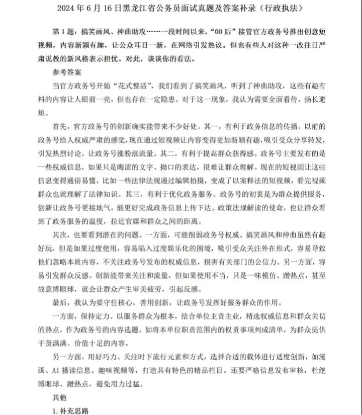 15-24年黑龙江公务员面试真题含答案逐字稿