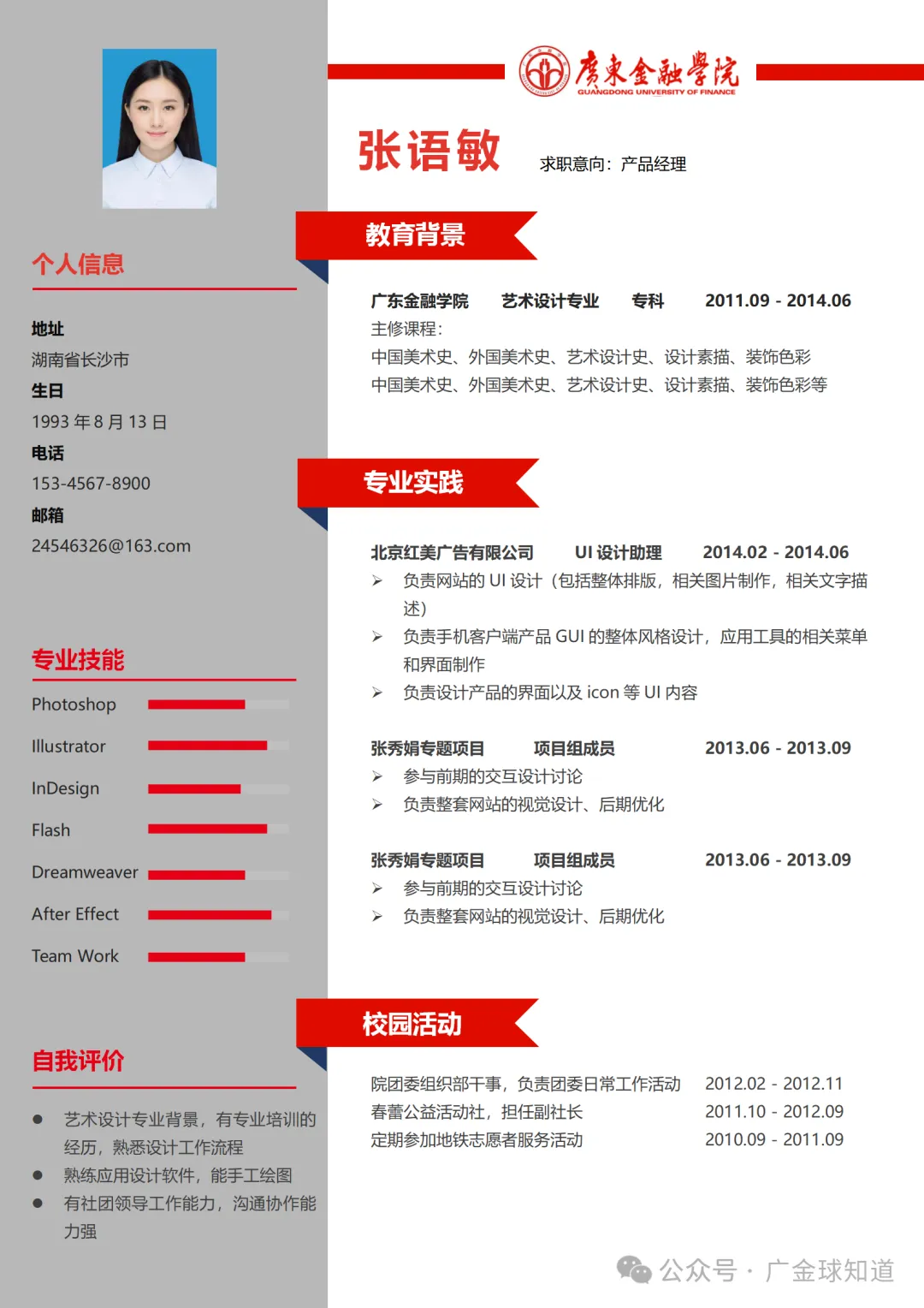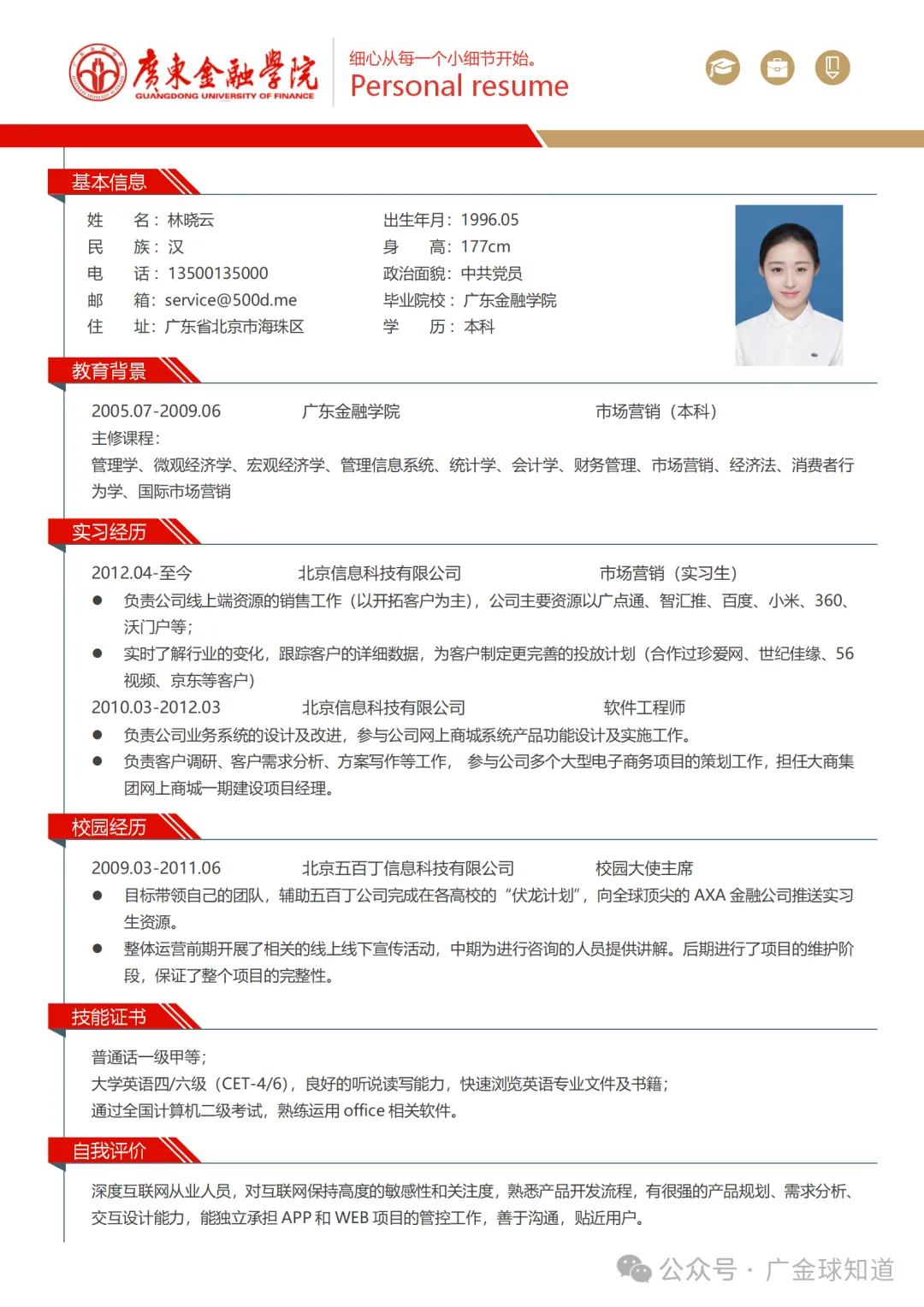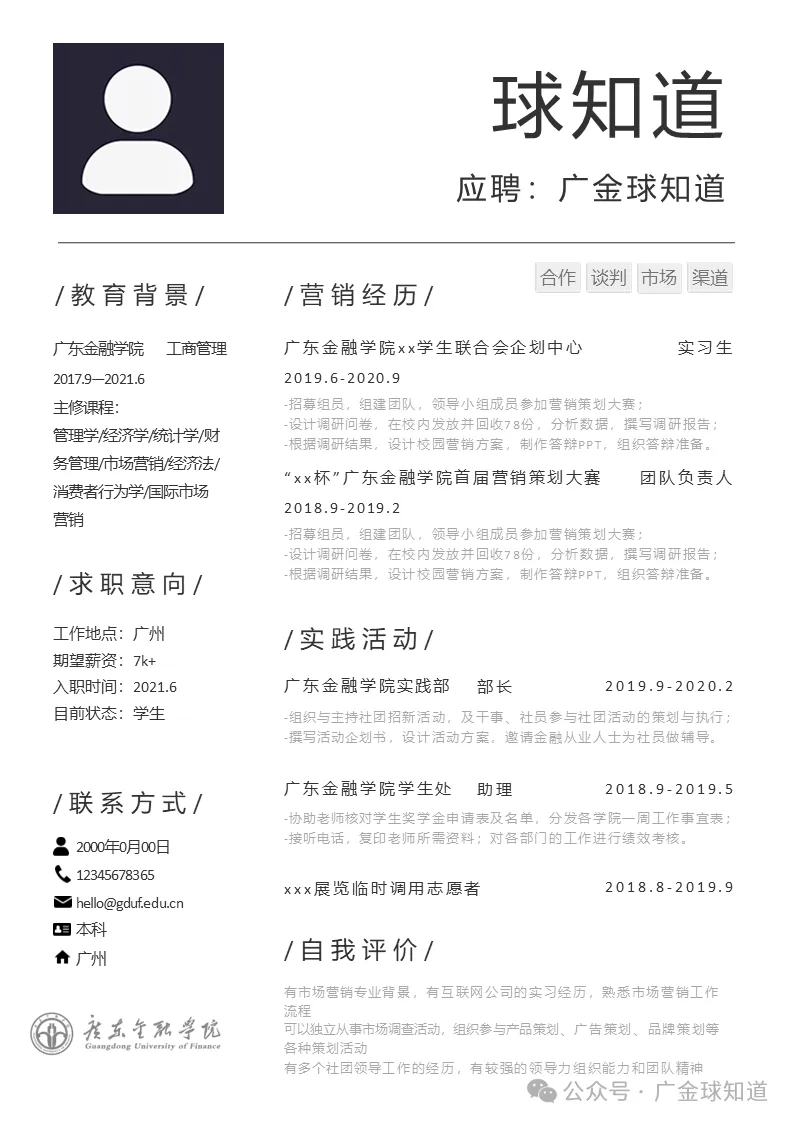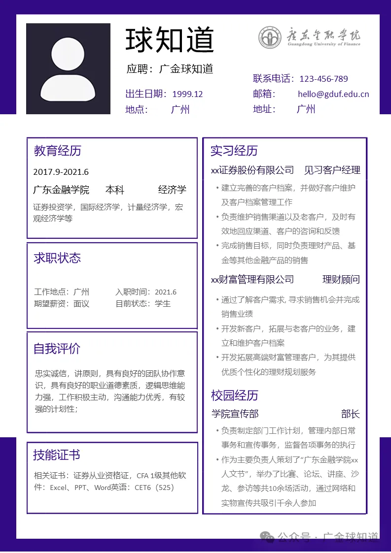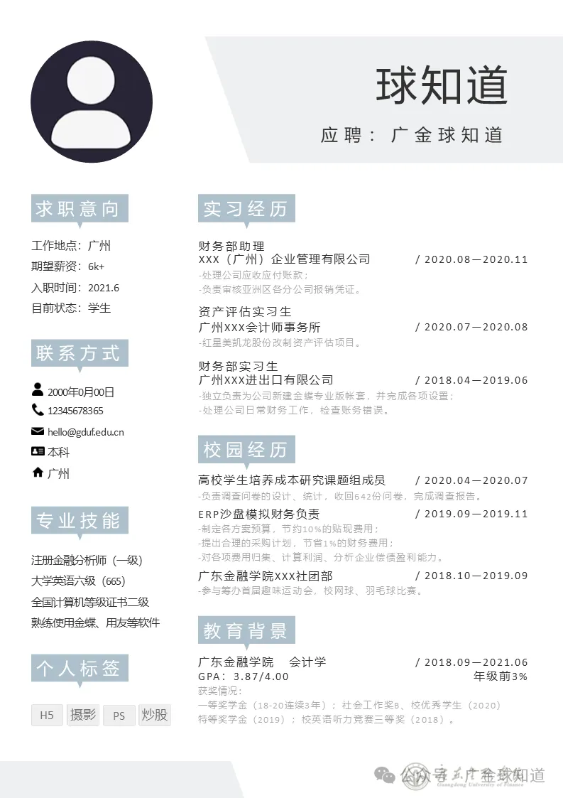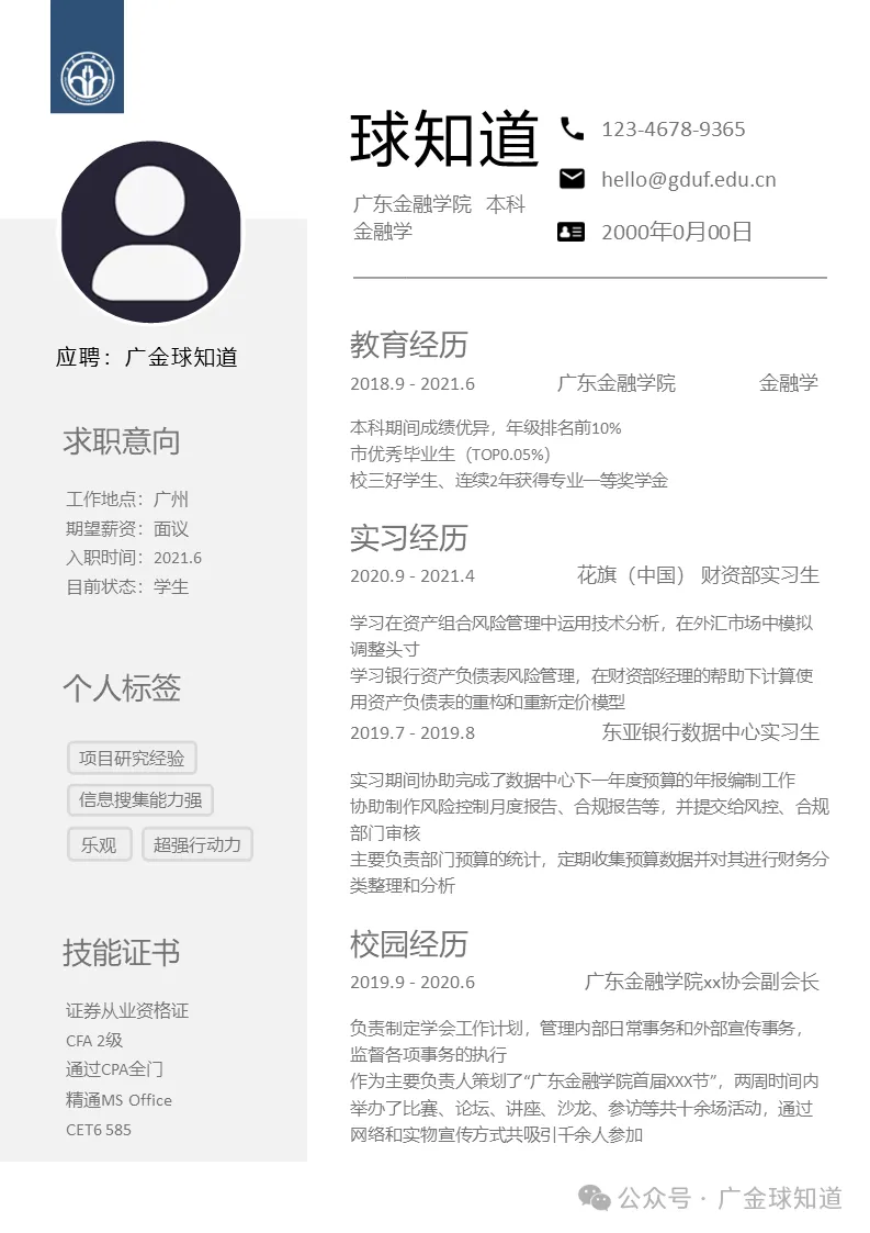 >广东金融学院简历模板来啦~