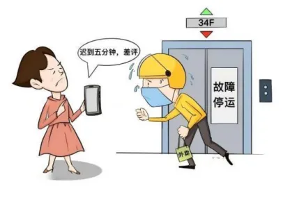 例题:漫画中一位女士拿着手机,写的“迟到五分钟,差评”。旁边一位外卖小哥手里拎着一份外卖,身后的电梯写着“故障停运”,楼层有30多层。对漫画拟定一个标题,并谈谈你的看法。(2024年4月28日湖南省考县乡岗真题)