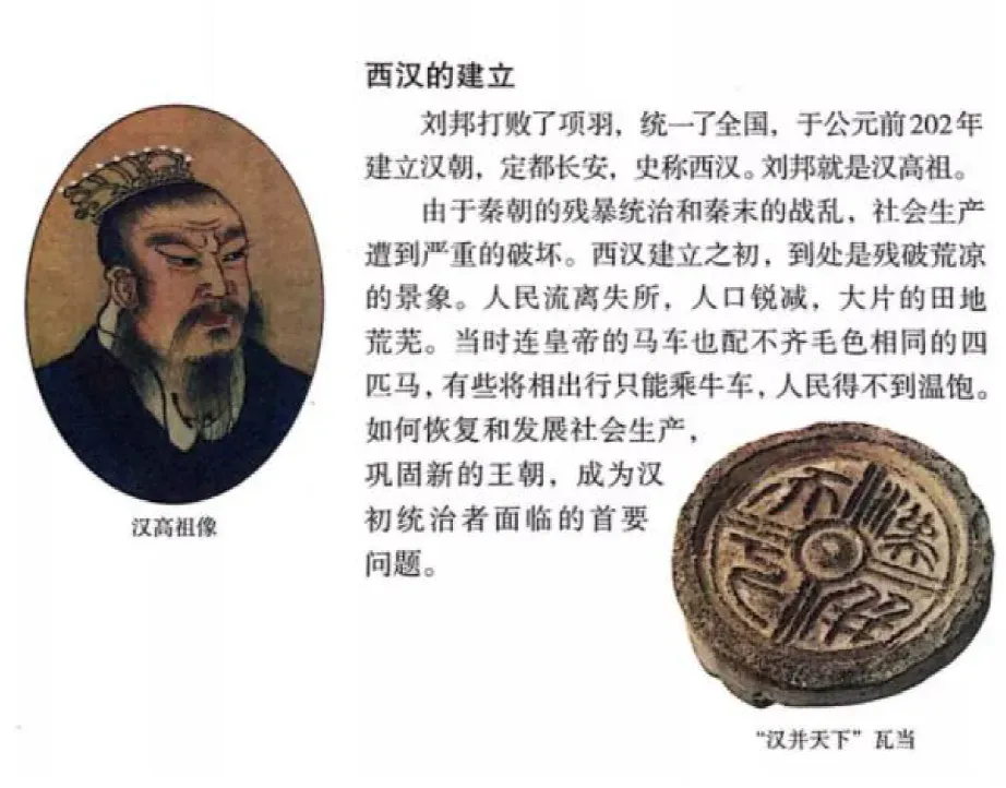 教师补充:公元前202 年,刘邦建立汉朝,定都长安,史称西汉,刘邦就是汉高祖。