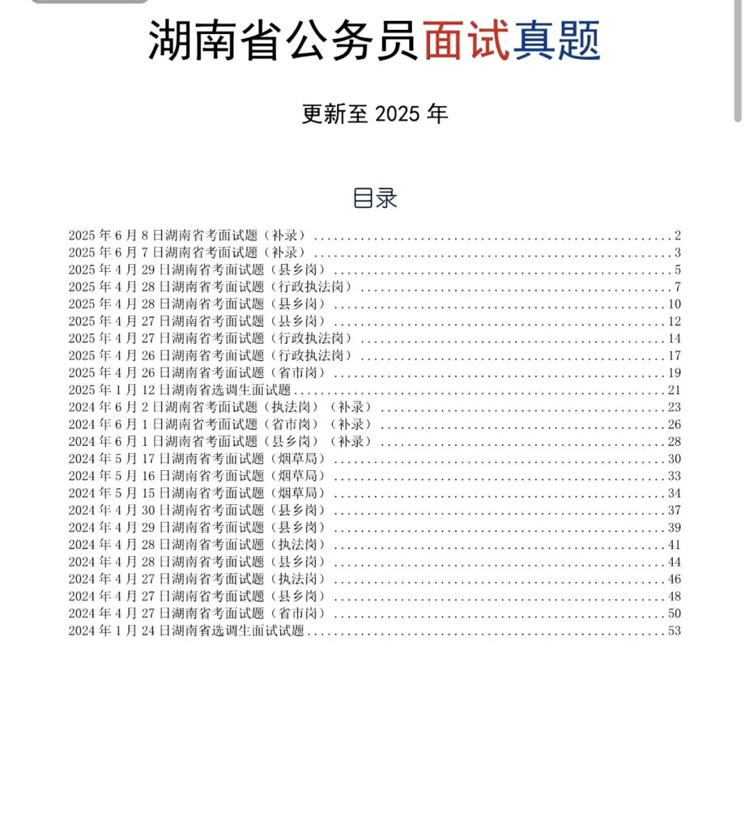【湖南】2024-2025湖南公务员面试真题汇总(均有解析逐字稿)