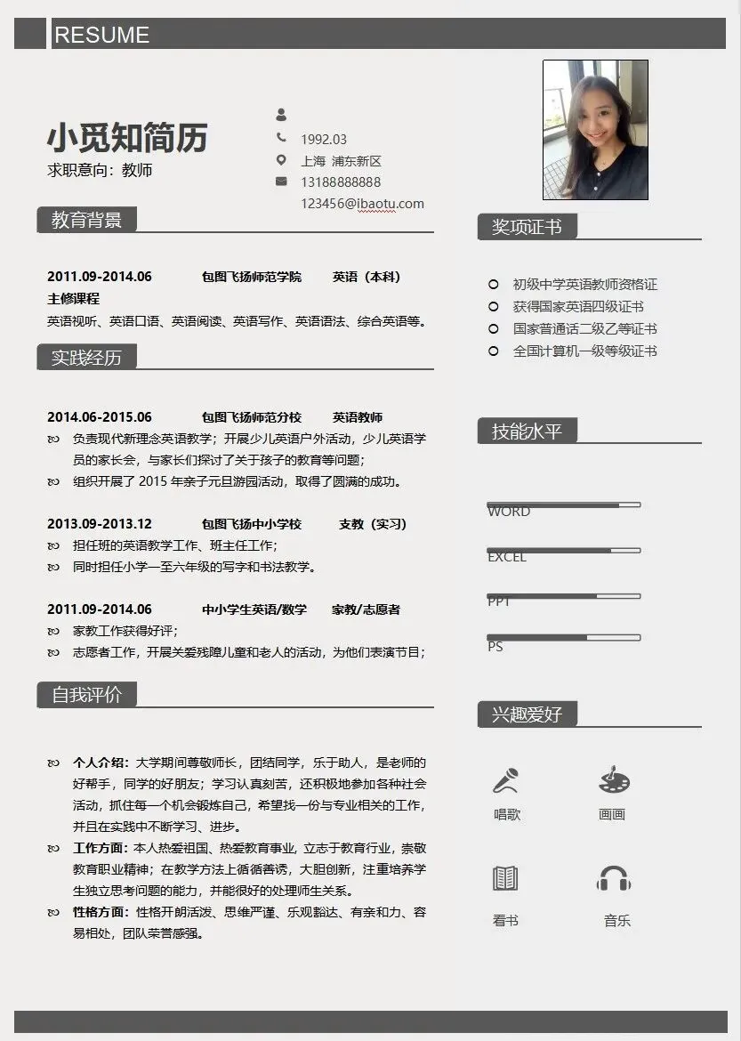 本文内容分享【教师个人简历通用模板】