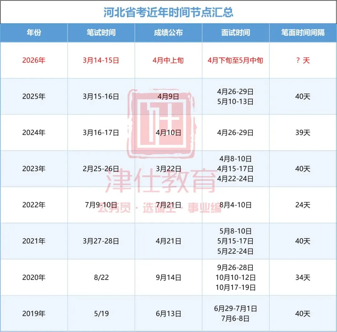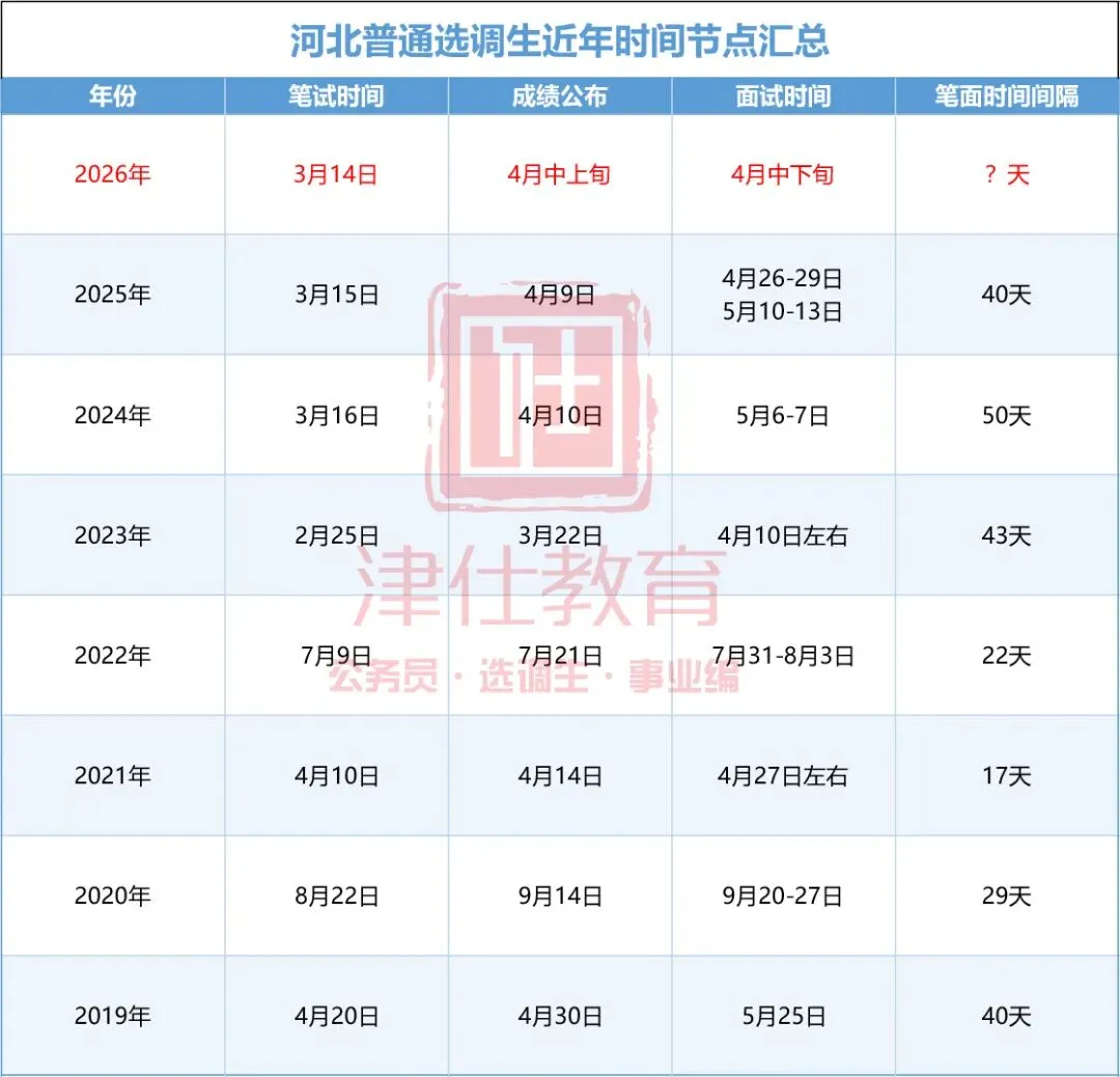 今年河北省考/普通选调在公告中已经写明,将于4月中旬公布笔试成绩,从近几年的时间节点来看,大概率在4月下旬开始进行面试,同学们的面试备考也要抓紧啦~
