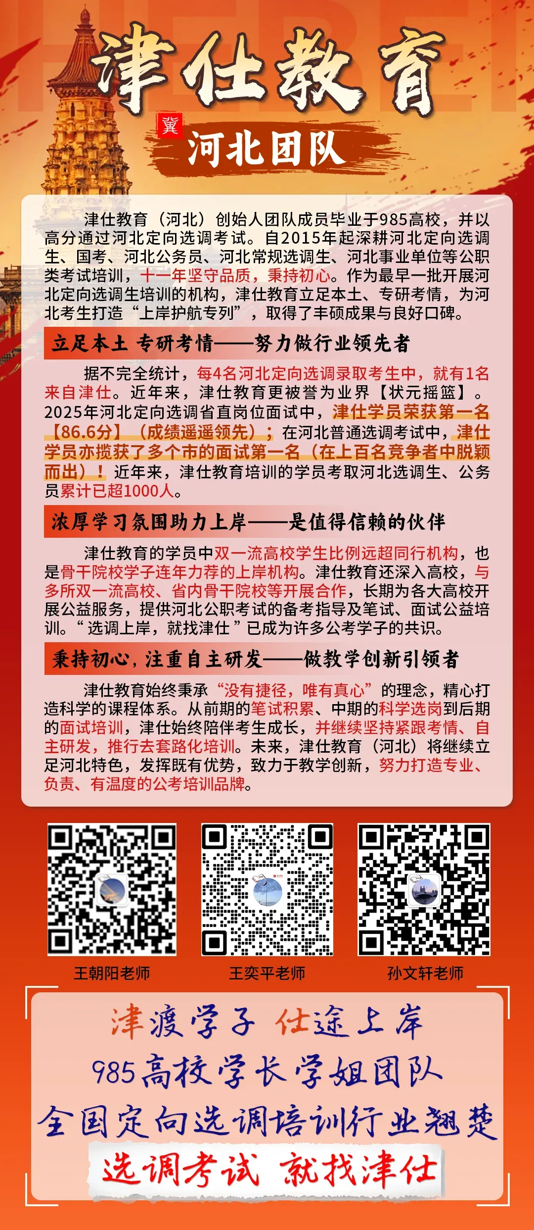 “得面试者得岗位”,为了助力大家学好面试,一战上岸,津仕教育河北团队汇总整理了河北省考/普通选调历年面试真题解析,并且每道面试题都附带思维导图,便于同学们理解、吸收相关知识点,提升面试能力。