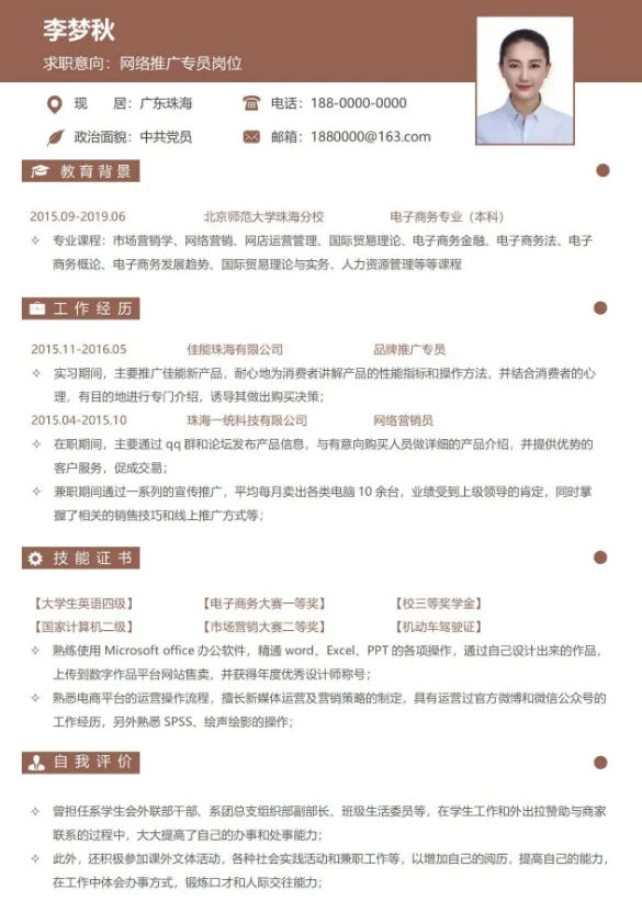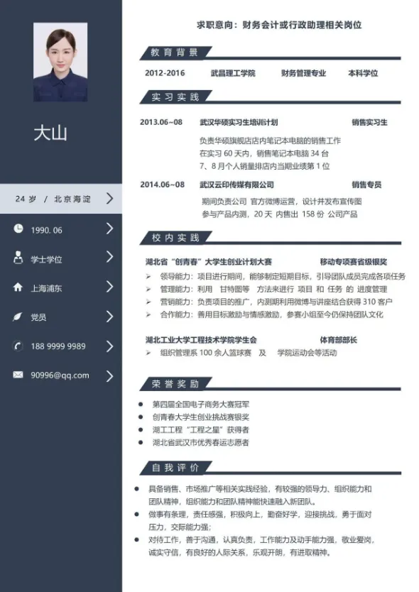 本文分享:个人简历模板(word电子版)