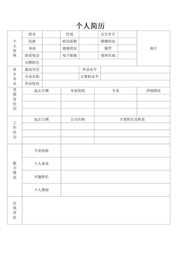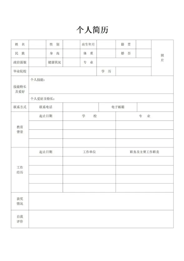 #个人简历电子版可填