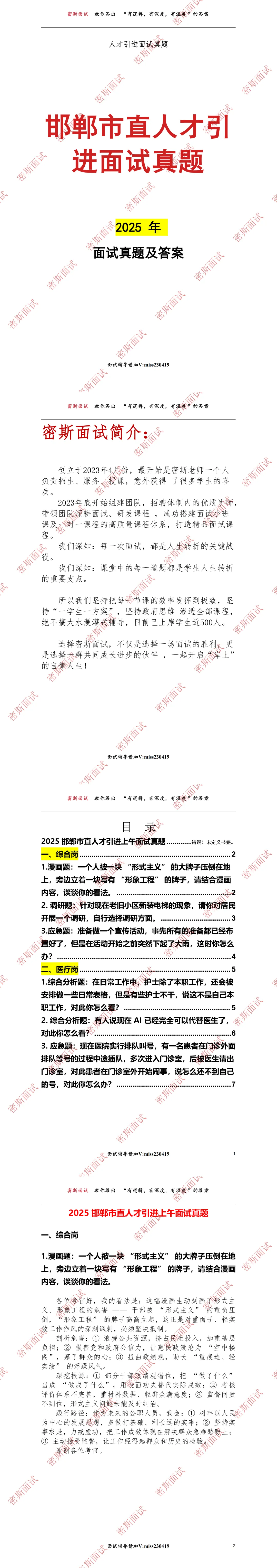 邯郸地区人才引进历年面谈面试真题已全部更新,适用于备考2026年人才引进!扫描下方二维码,添加密斯老师微信,备注目标考试地区,给您分享历年面试真题!