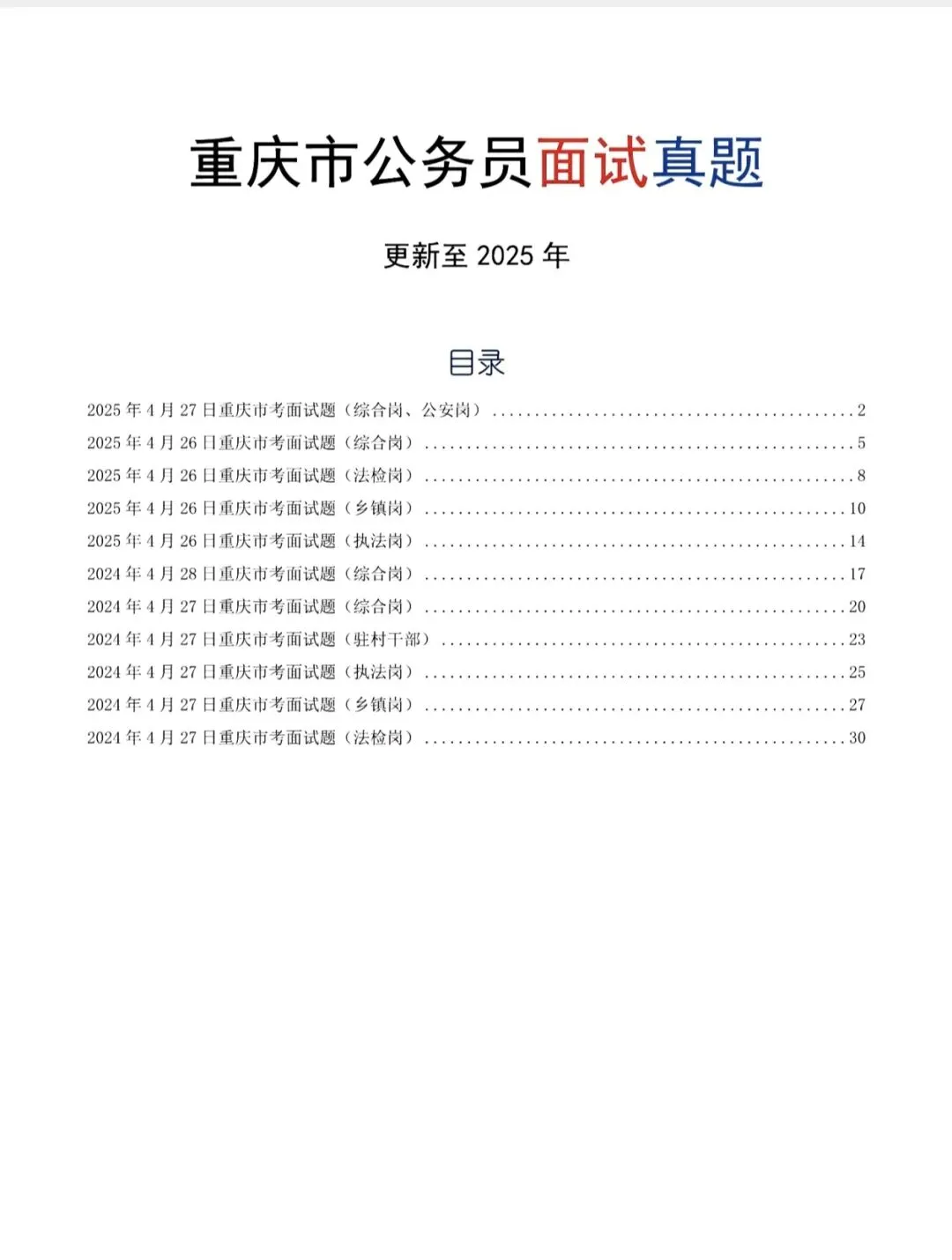 >【重庆】2024-2025重庆公务员面试真题汇总(均有解析逐字稿)