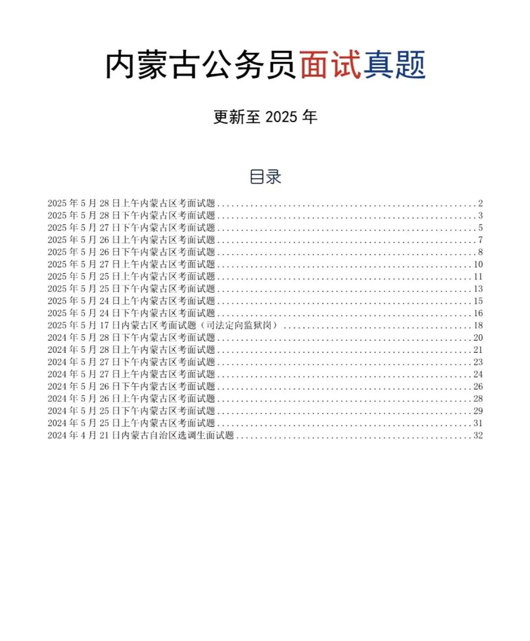 >【内蒙古】2024-2025内蒙古公务员面试真题汇总(均有解析逐字稿)