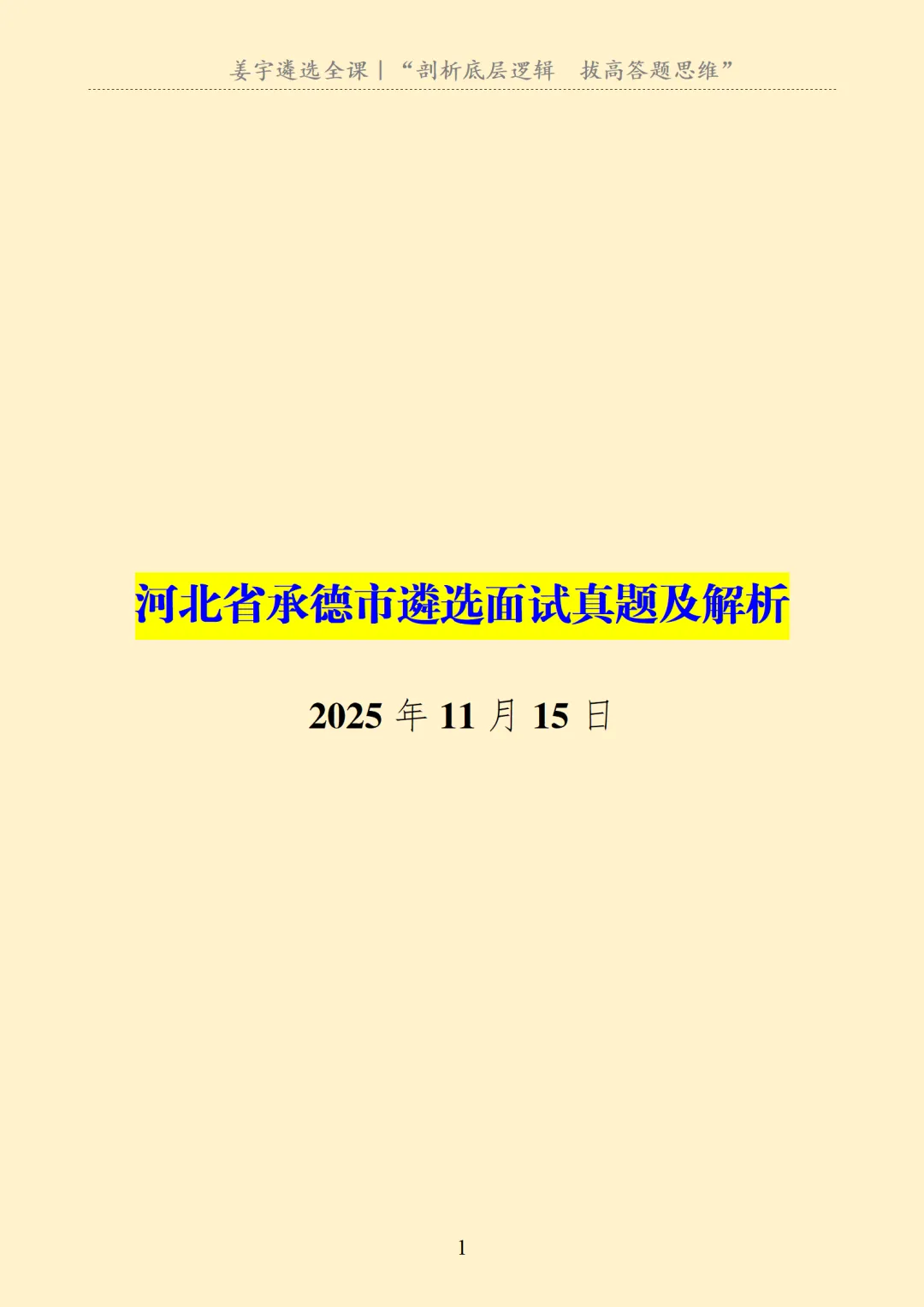 2025年11月15日|河北省承德市遴选面试真题及解析