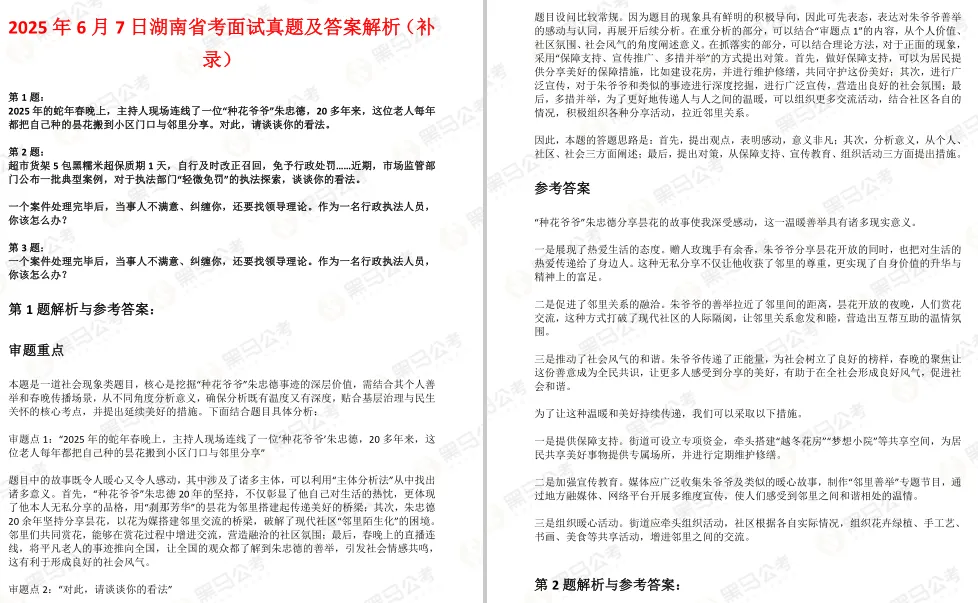 为此,黑小马也为大家整理了一份超全的面试备考资料,涵盖历年真题、热点素材、答题框架等实用内容。