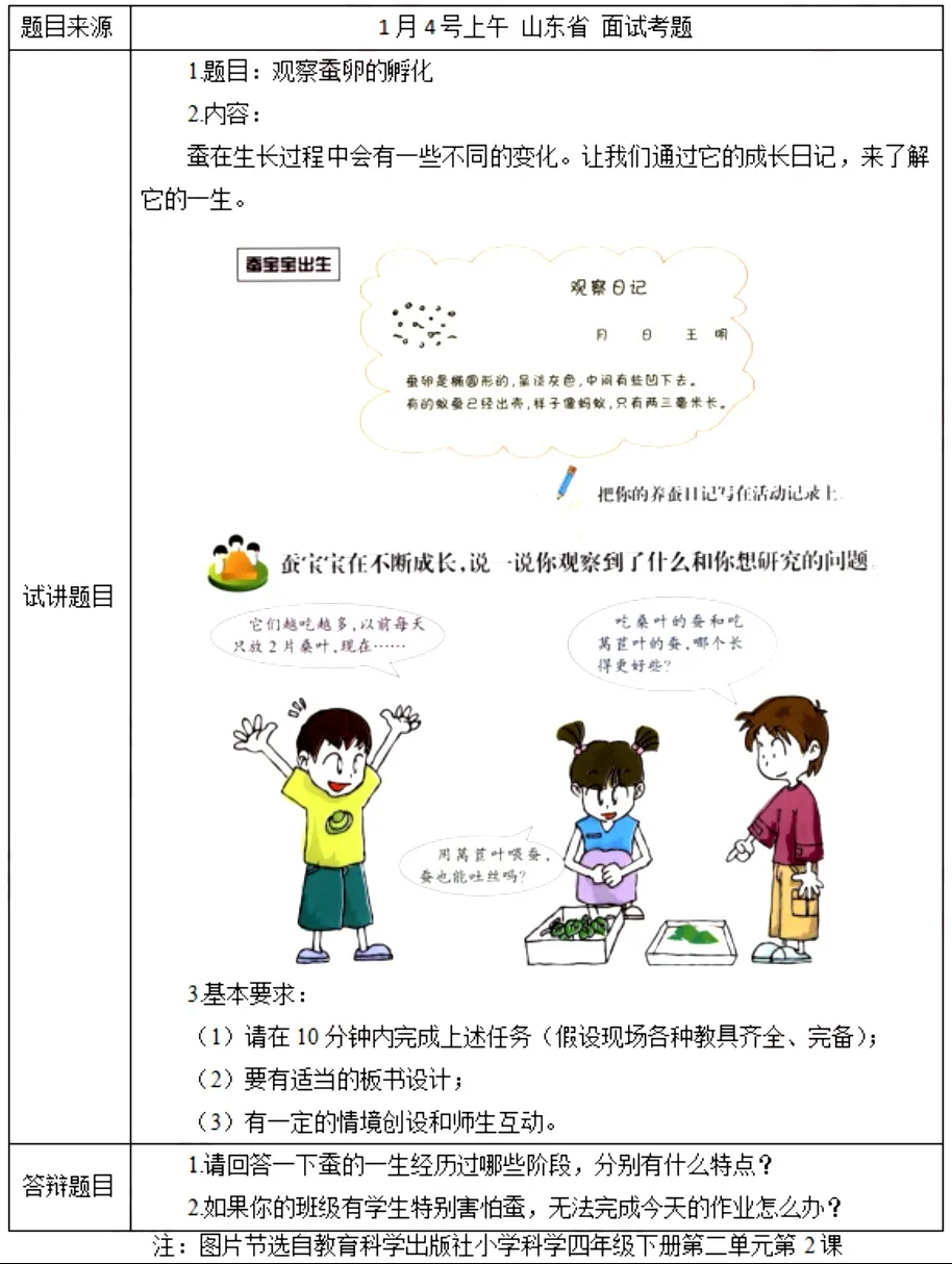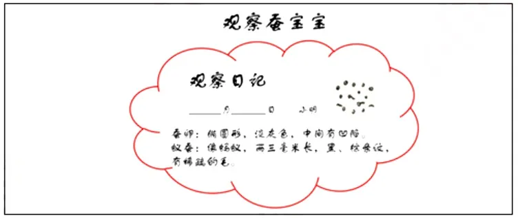 (2)学生分小组完成任务,教师展示优秀成果,并对全班同学予以肯定。在完成第一环节后,教师设置“小小科学家”,提问学生:你还想在日记里加什么?并提示学生,我们可以观察蚕发生了什么变化,或者人为的改变一些蚕生活的外部条件,观察蚕的生活是否发生了改变。请同桌两人讨论,并和全班同学表达交流。