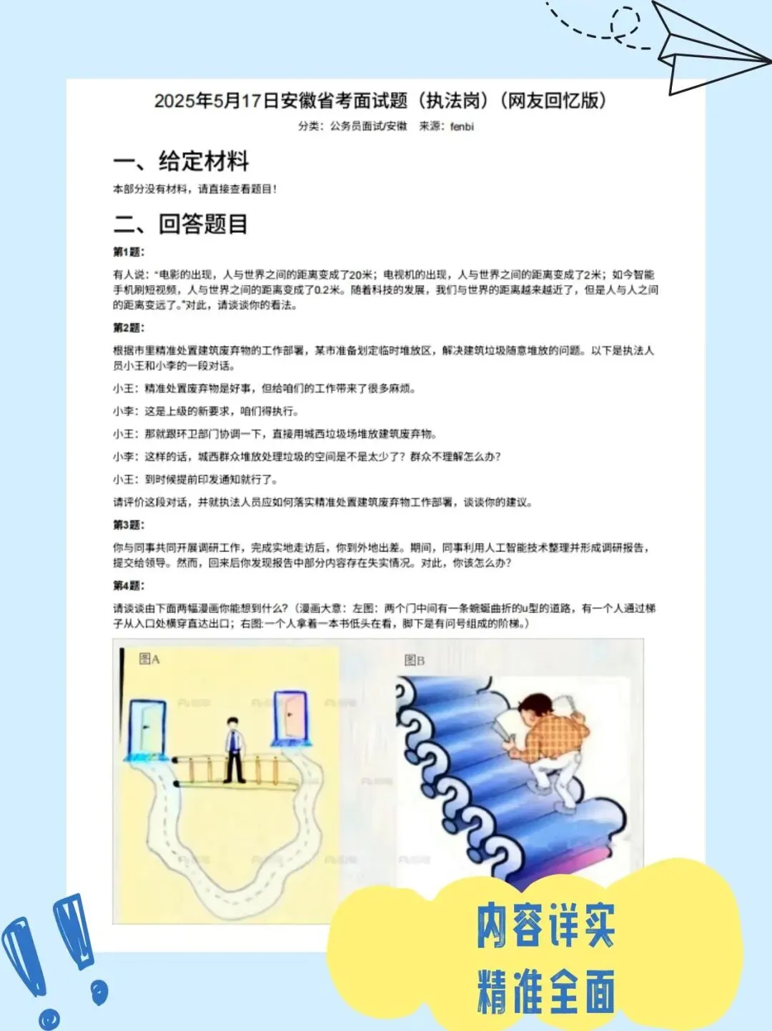 还有 2025 年 5 月 17 日执法岗真题解析,涵盖材料分析、实务处理、漫画解读等多种题型,每类题目都有详细的解题步骤和答题示范,全方位适配不同题型的备考需求。