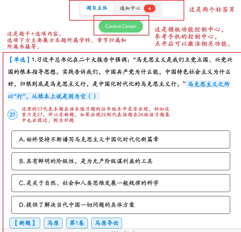 伴随着27考研逐渐拉开序幕,今日特介绍一下本年度的客观题模板界面及相关功能。【本模板将广泛应用于本工作室相关产品】
