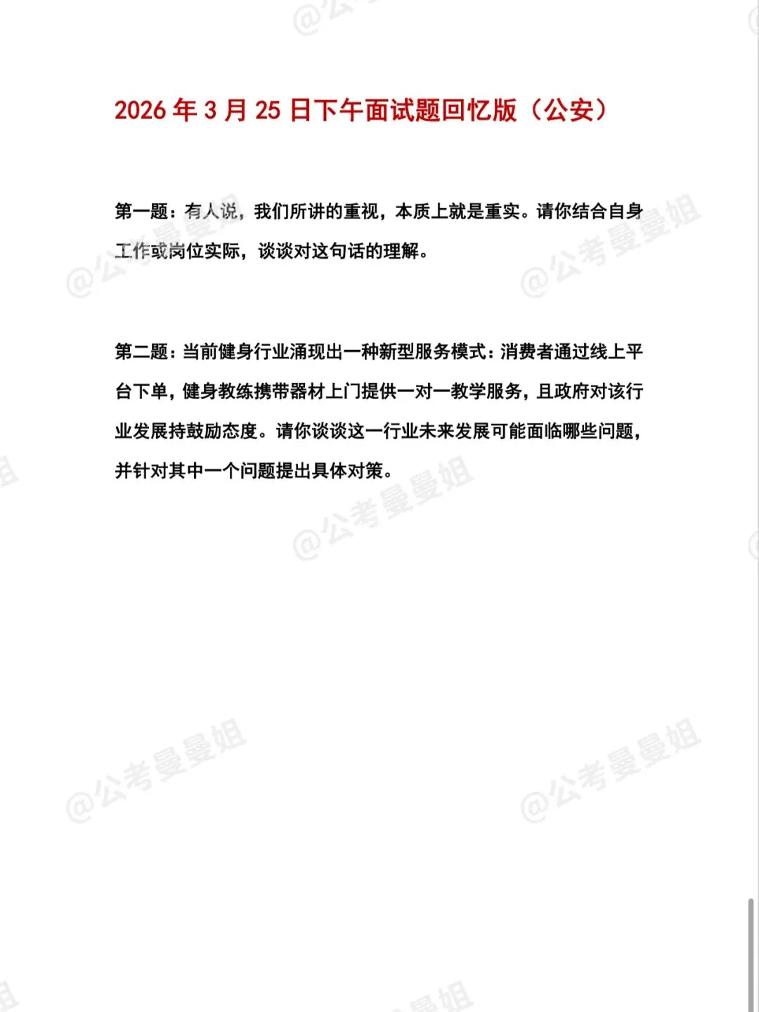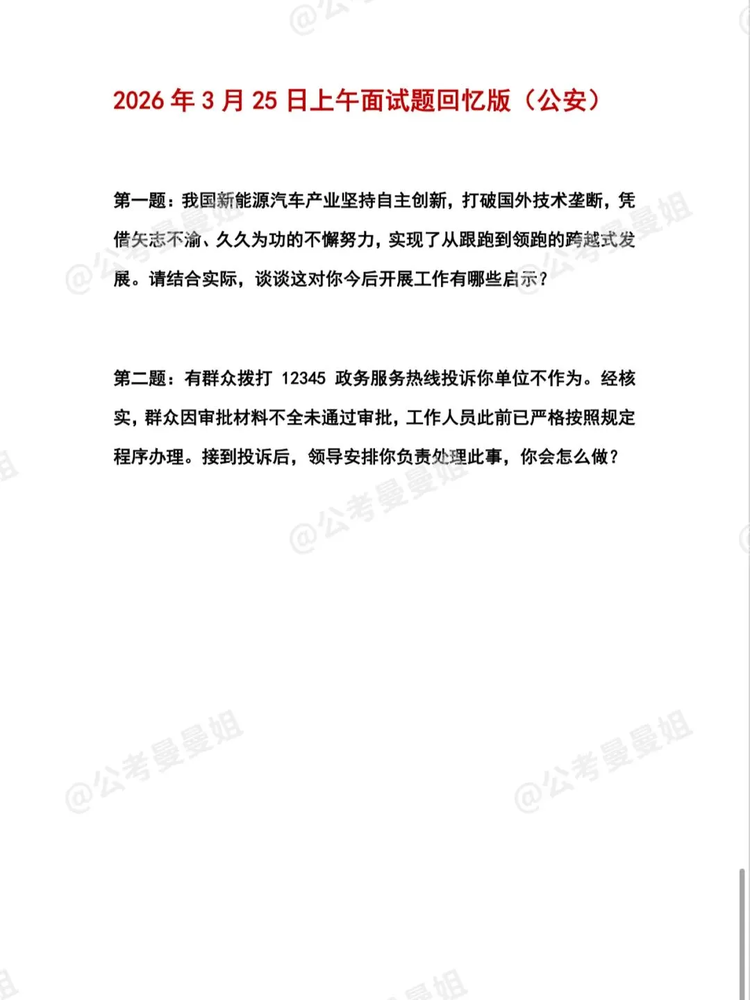 >2026年3月25日山东省考(公安)面试题目(考生回忆版)
