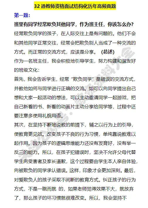 教资面试历年真题(结构化+试讲+答辩)【🔥推荐】https://pan.quark.cn/s/f98bc84cb524