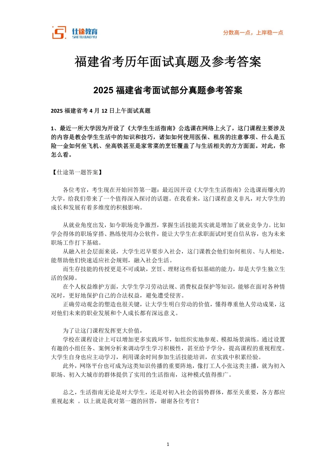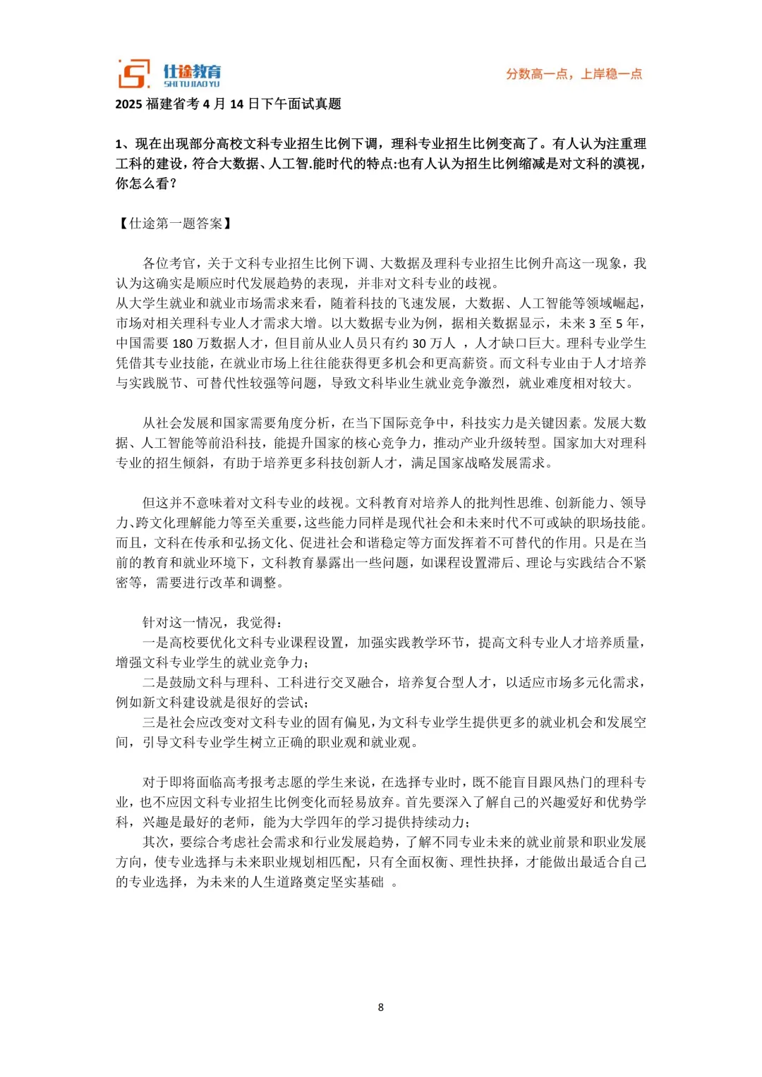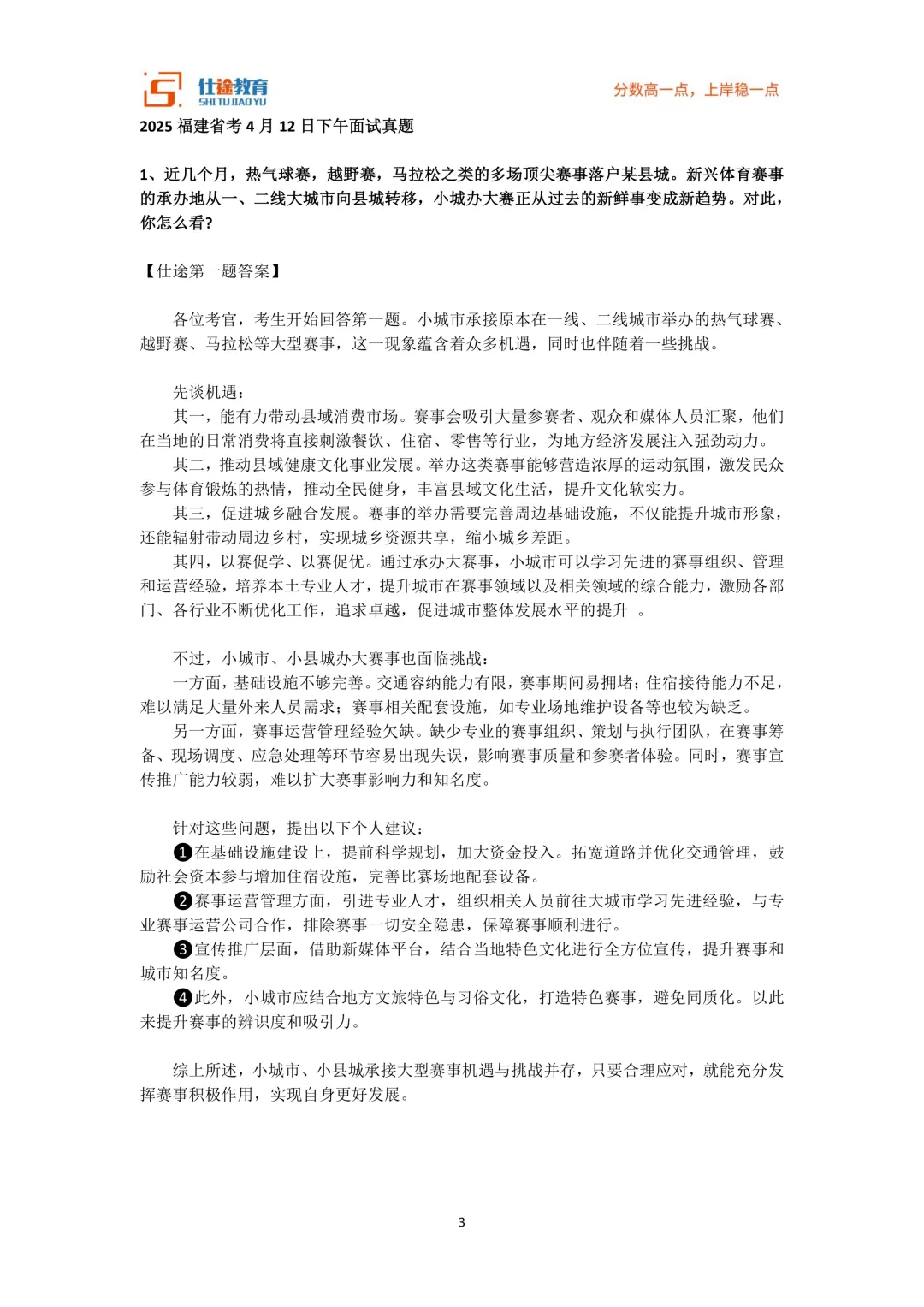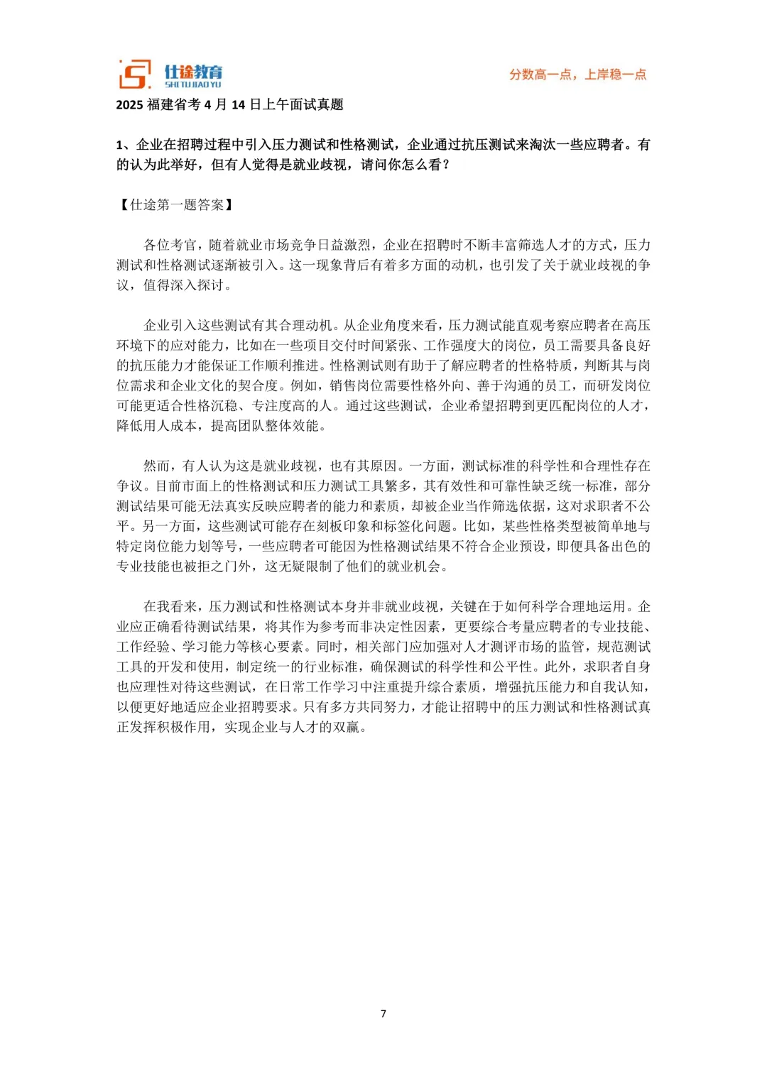 2025福建省考4月12日面试题参考答案+解析(考生回忆版)