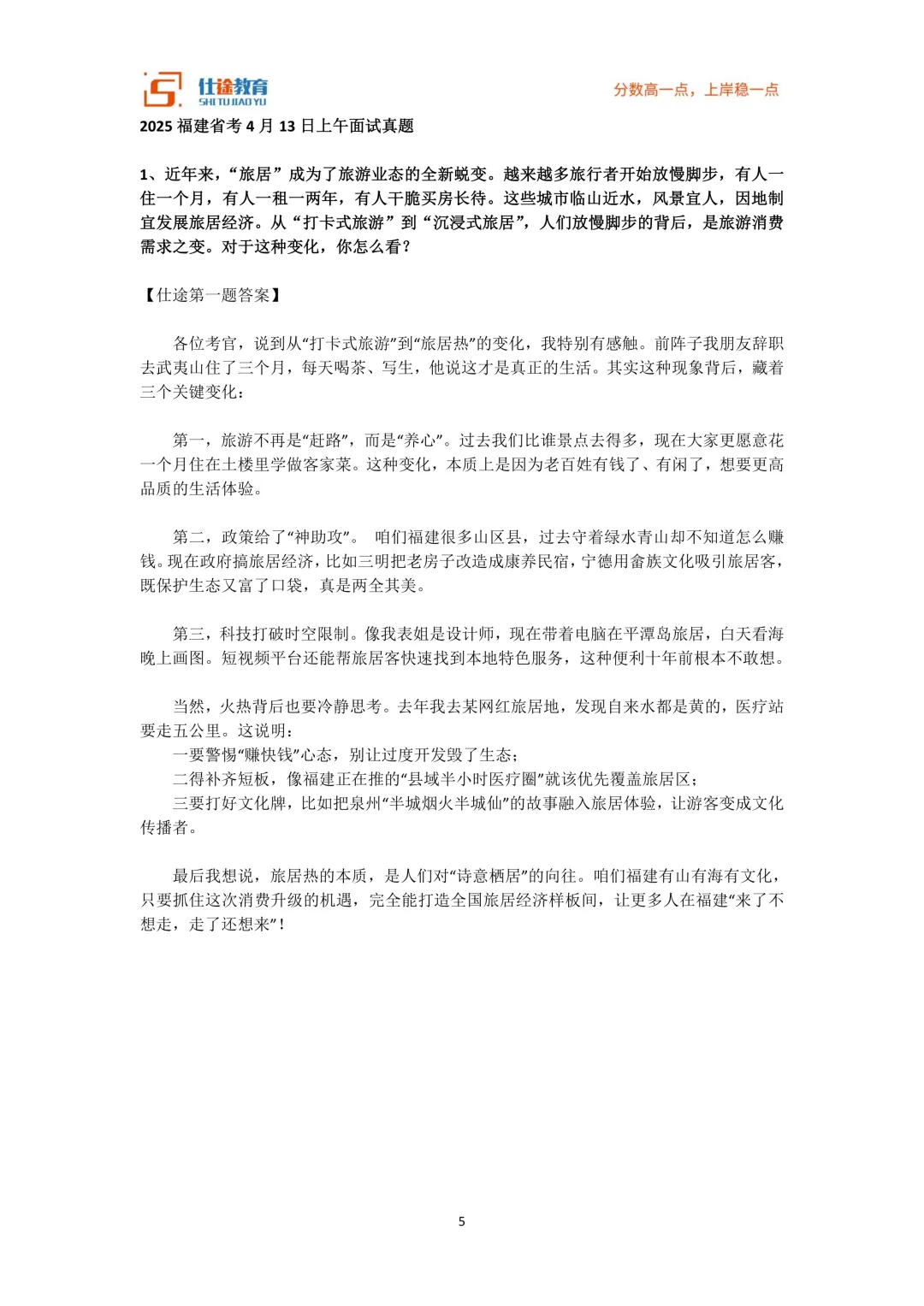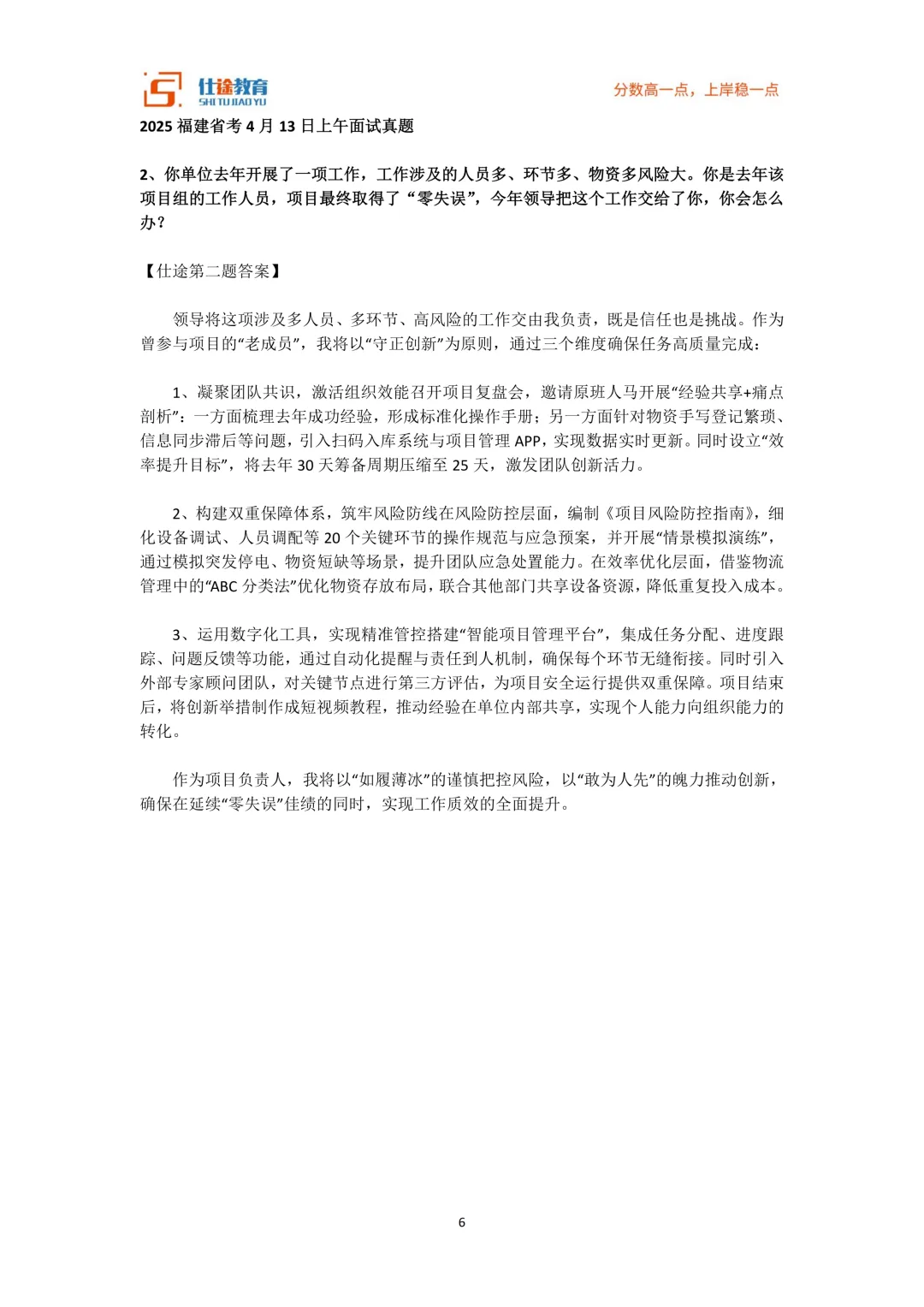 2025福建省考4月13日上午面试题参考答案+解析(考生回忆版)