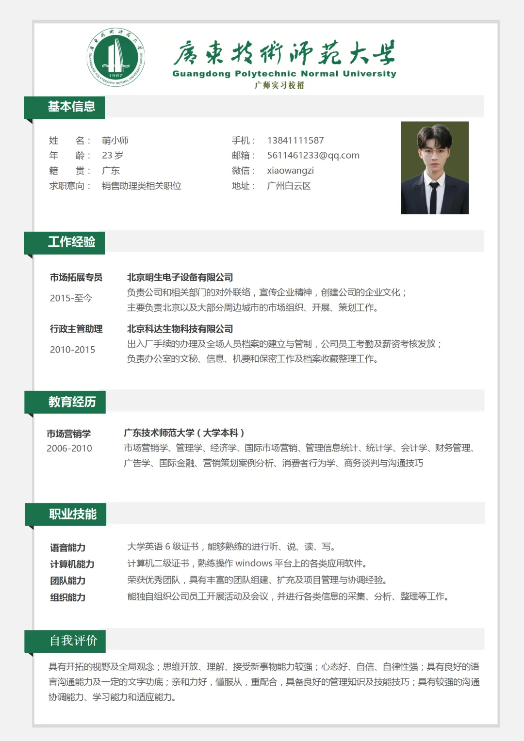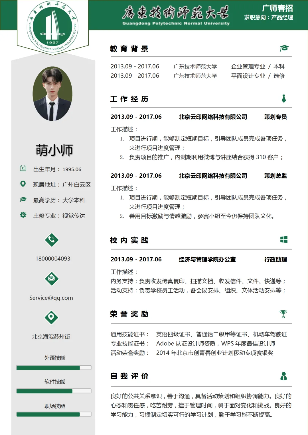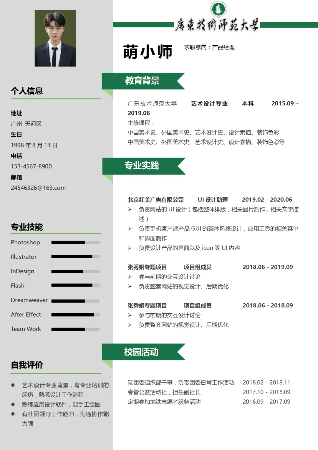 >广师专属简历模板来啦!承包你从广师到毕业的简历!