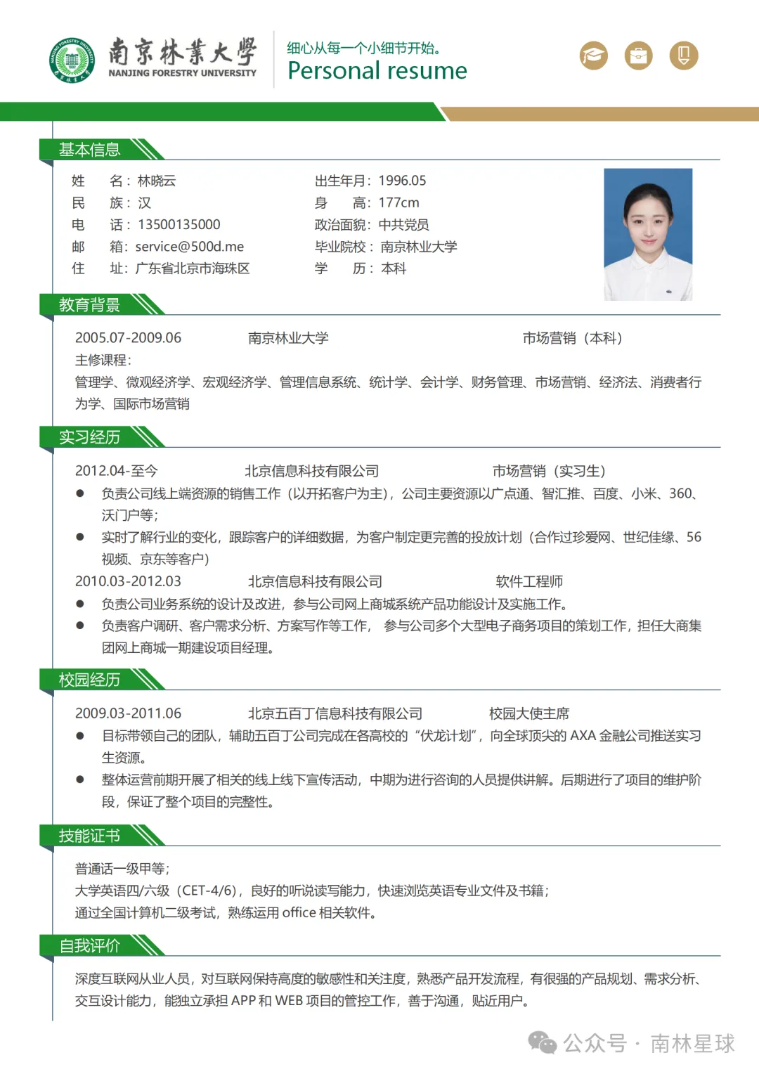 新生攻略 | 南京林业大学简历模板~