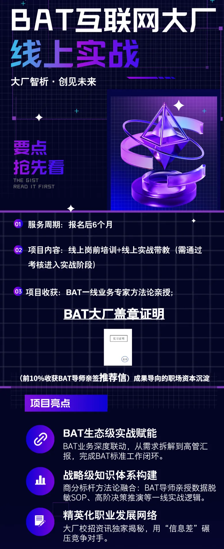 ② 求职时,需满足一周五天、实习2-4个月、随时到岗的优势条件,才有可能进入大厂考虑范围;
