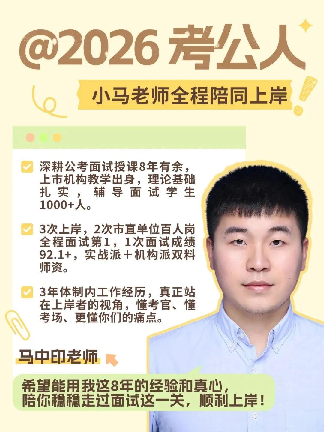 只要考生跟着马老师走,研究透题目,频繁开口练习,面试就会更有把握,有需求的同学,可以加老师好友,免费领取以上河南省考面试资料。